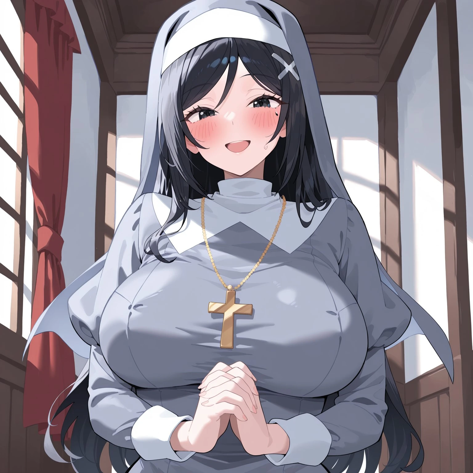 3. karnun, cross necklace, necklace, cross, nun, traditional nun, habit, long sleeves, golden cross necklace, grey habit