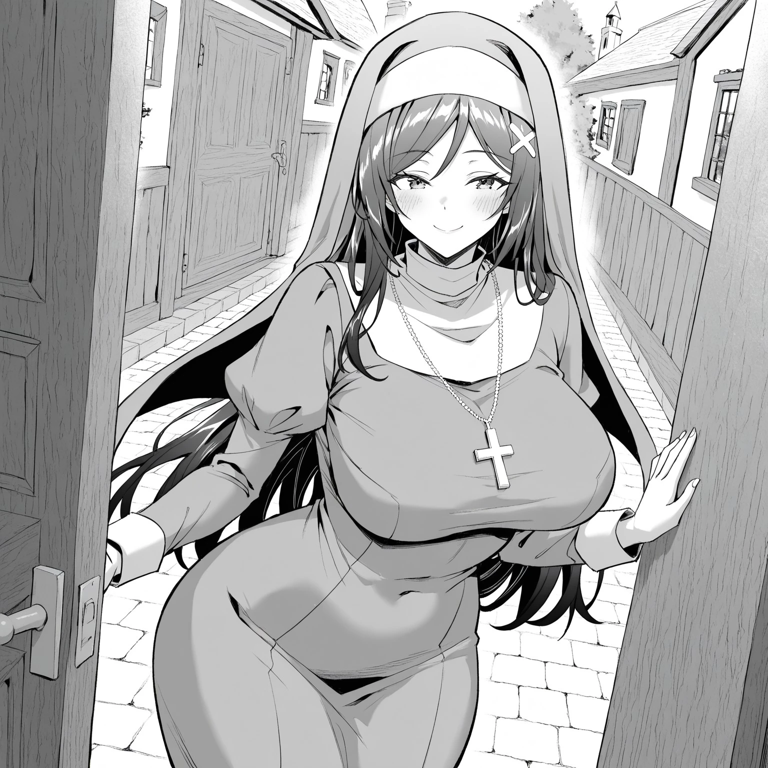 3. karnun, cross necklace, necklace, cross, nun, traditional nun, habit, long sleeves