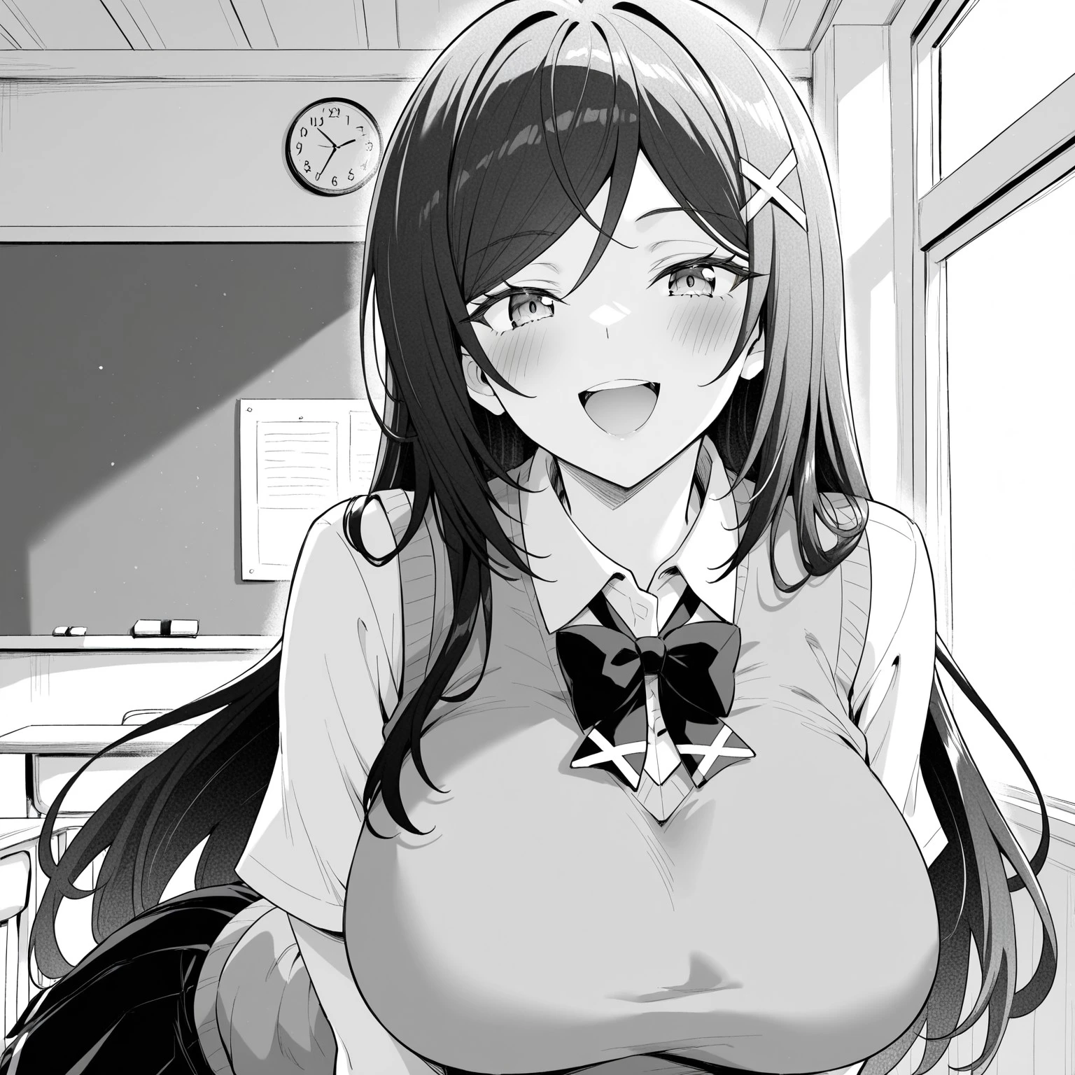 Base: karbas, 1girl, long hair, black hair, hair ornament, ?????????????, mole on breasts