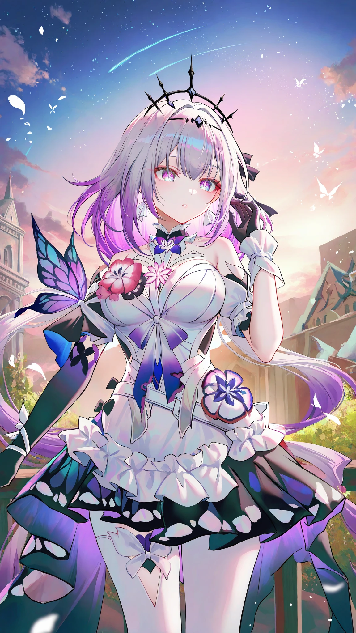 castorice \(honkai star rail\),purple hair,gradient hair,black gloves,light pantyhose,