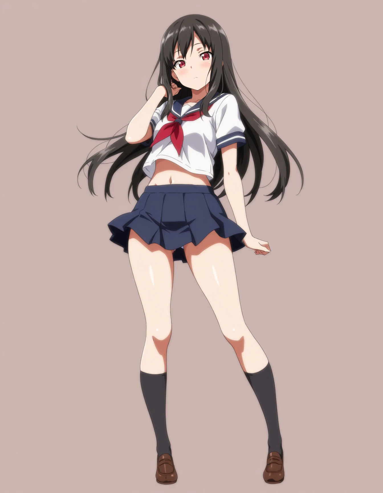 mai_imar,mai_kisaraim,long_hair,black_hair,red_eyes,school_uniform,serafuku,midriffYuri KAWASAKI 川崎 ユリ