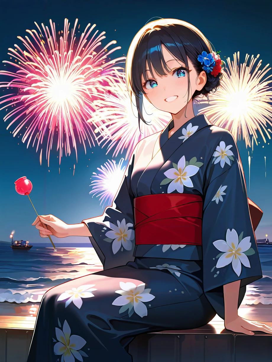 jyojifuku, yukata, kimono, floral print, hair ornament, obi, wide sleeves