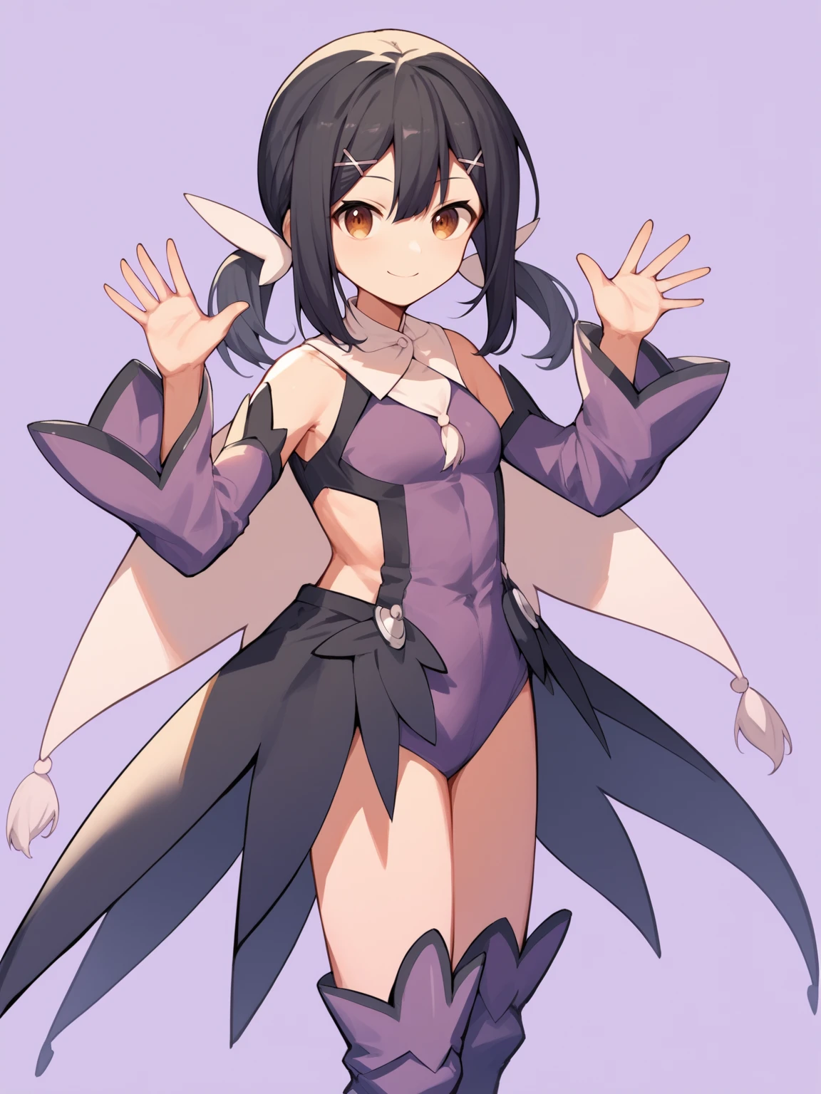 Magical girl prompts : miyumagirl, twintails, long hair, cape, detached sleeves, hair ornament, magical girl, purple leotard, thighhighs, boots