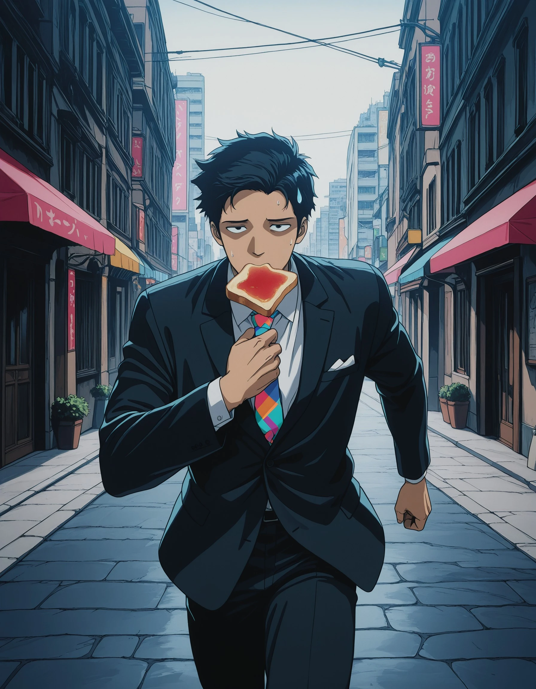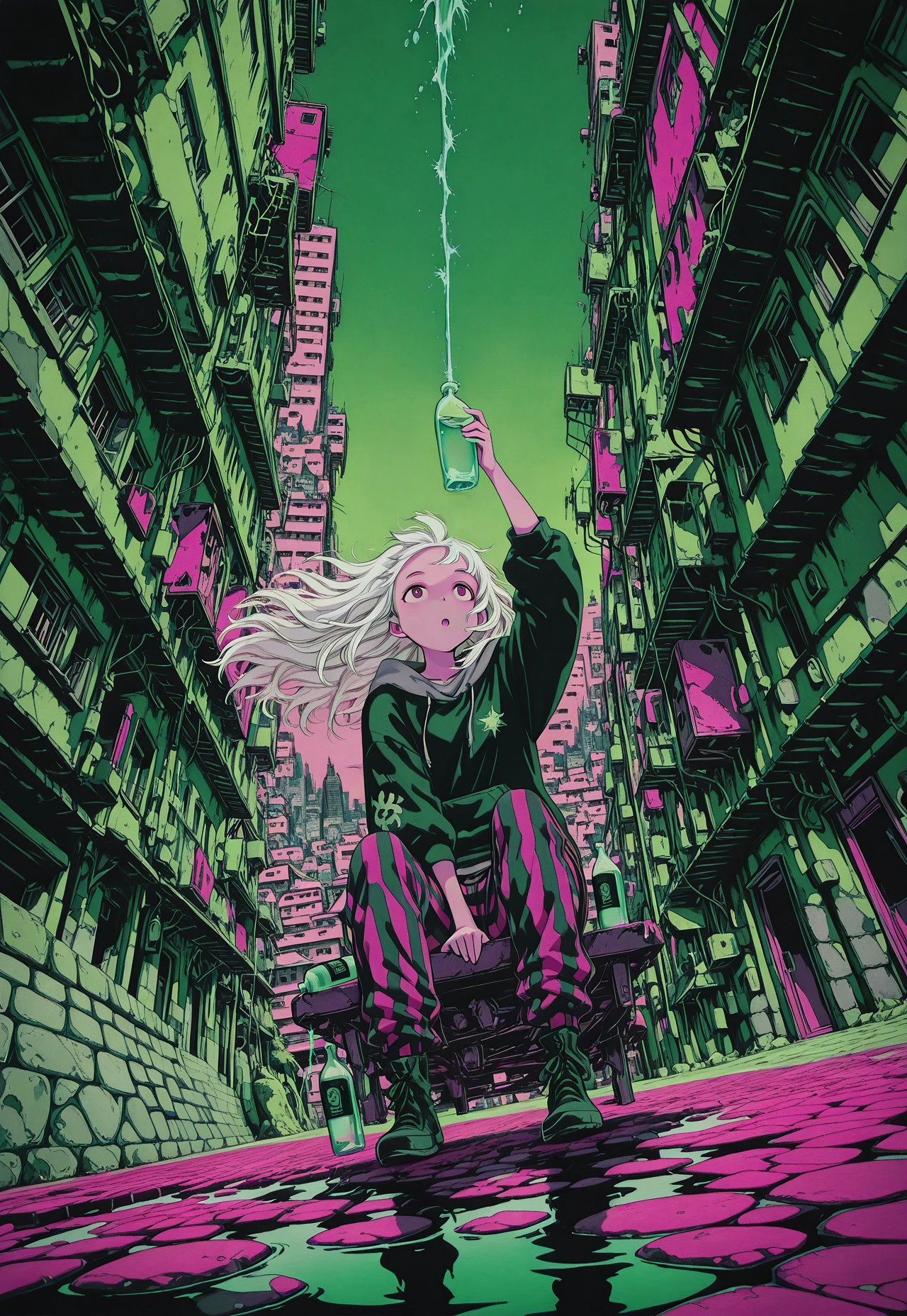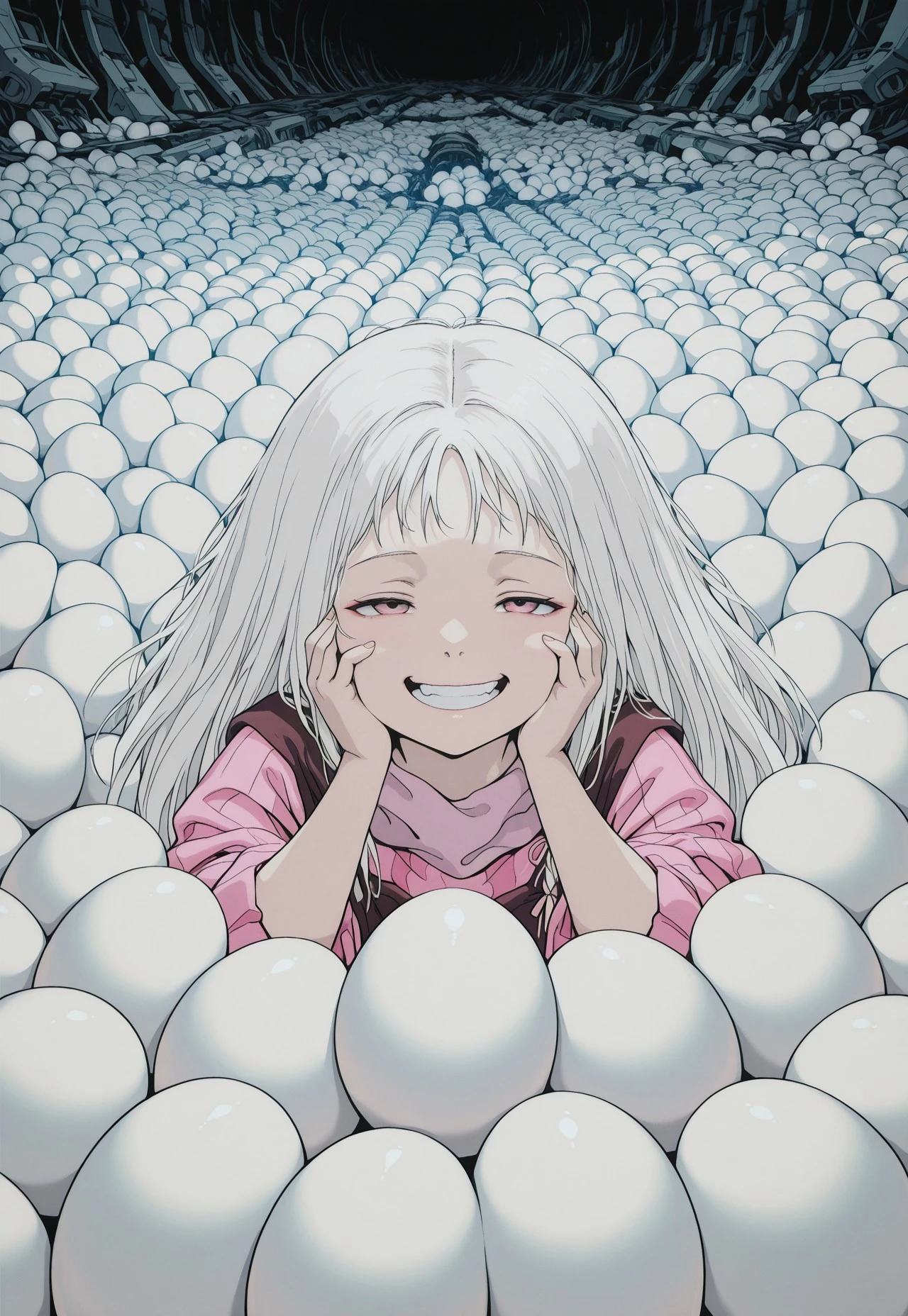 Used/useful tags: solo, white hair, 1girl, long hair, g1rl, 1boy, dark, holding, scenery, b0y, black background, no humans, ruins, red sky, expressionless, holding weapon, weapon over shoulder