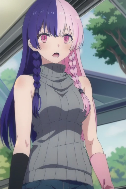 Original character: nagomi, long hair, multicolored hair, pink hair, purple hair, pink eyes, braid