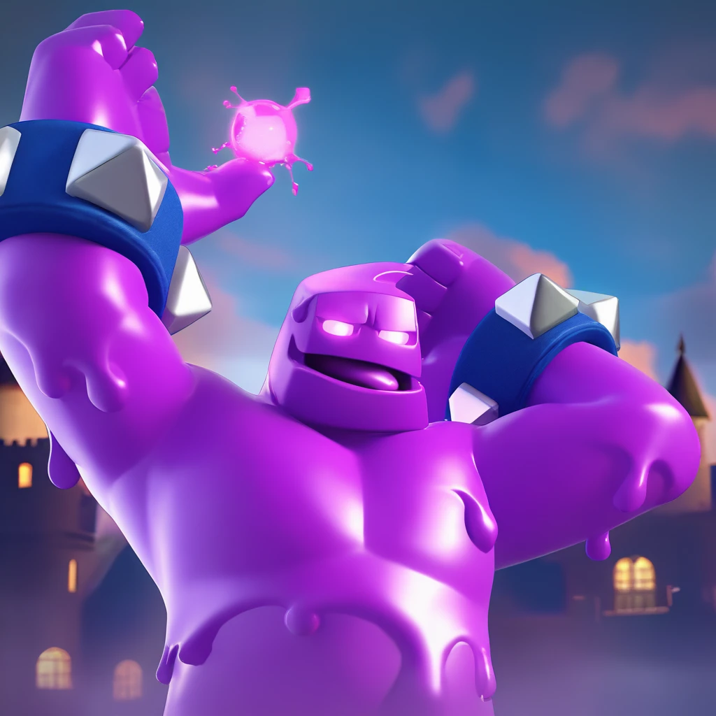 EL1X1R, pink body, melting, pink eyes, glowing eyes, golem, elixir, dripping, glowing, spiked bracelet, bracelet, <lora:elixirgolem:1>