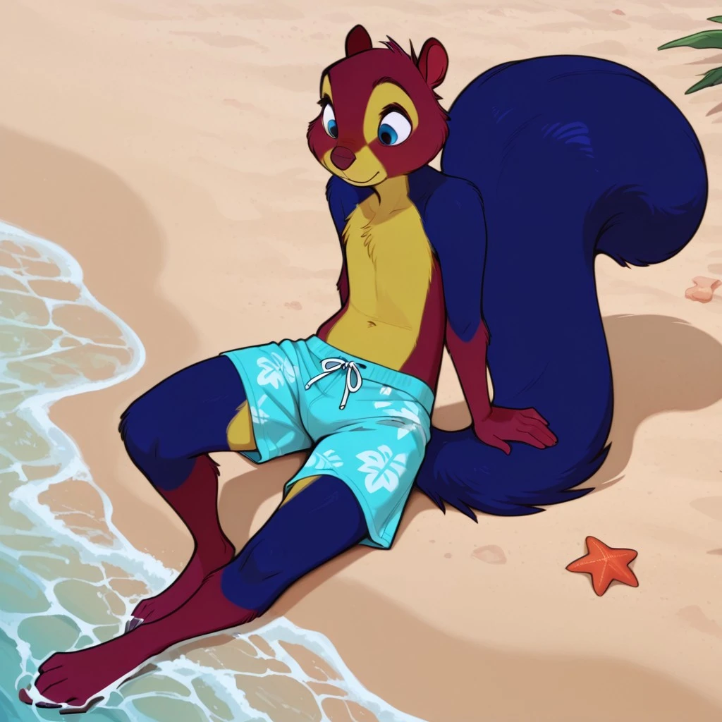 gntsqrrl, anthro, giantsquirrel, multicolored fur, blue fur, black eyes, tail,