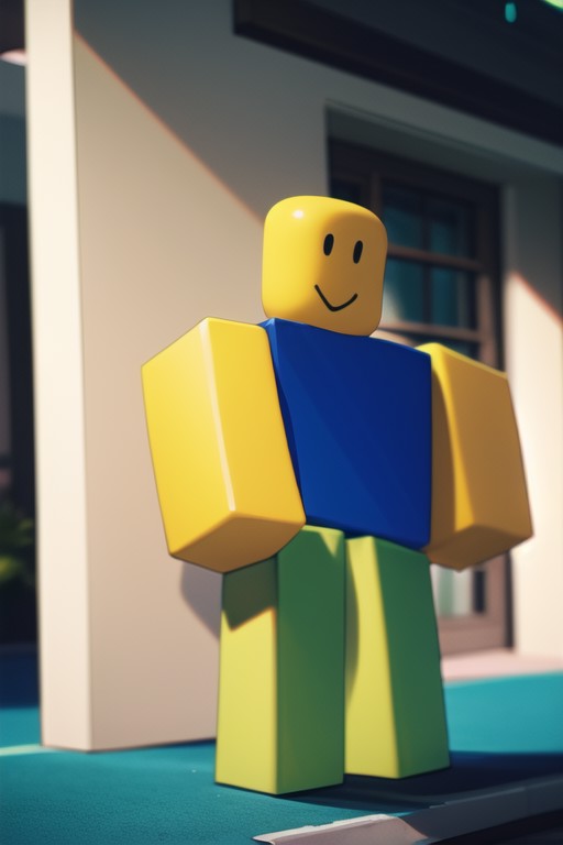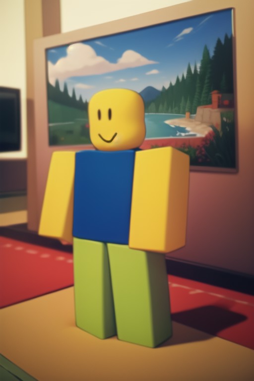 solo, standing, smile, green pants, blue shirt, yellow skin, sleeveless