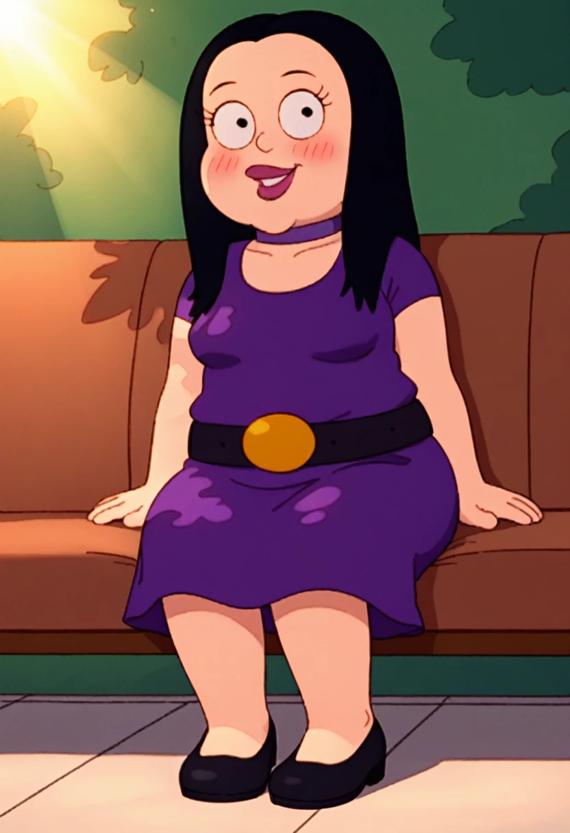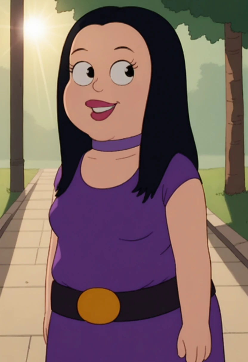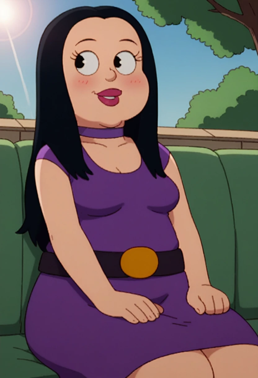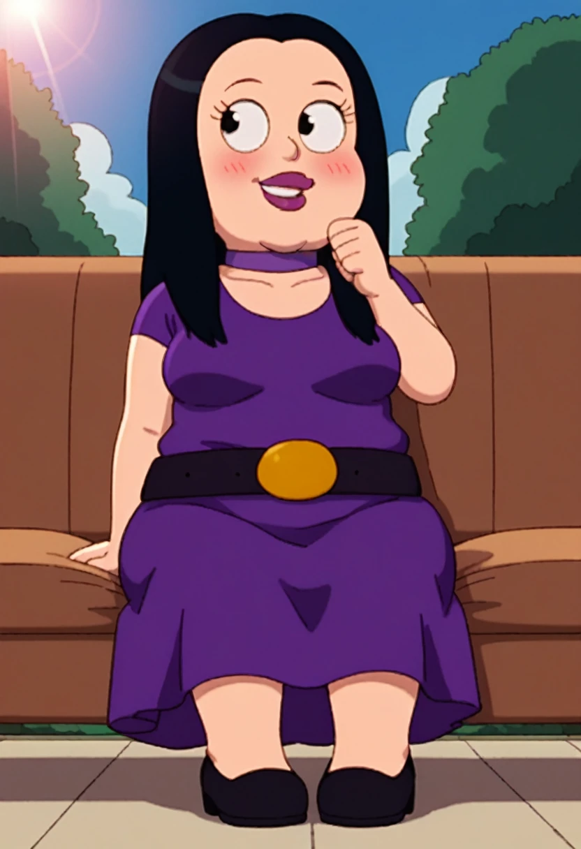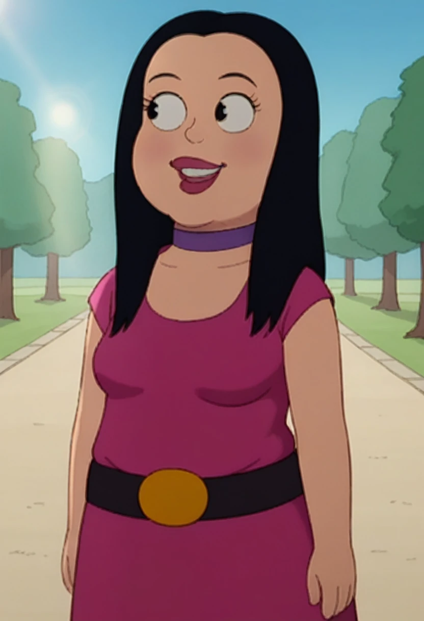 debbie_h, black hair, long hair, lipstick, dress, choker, belt