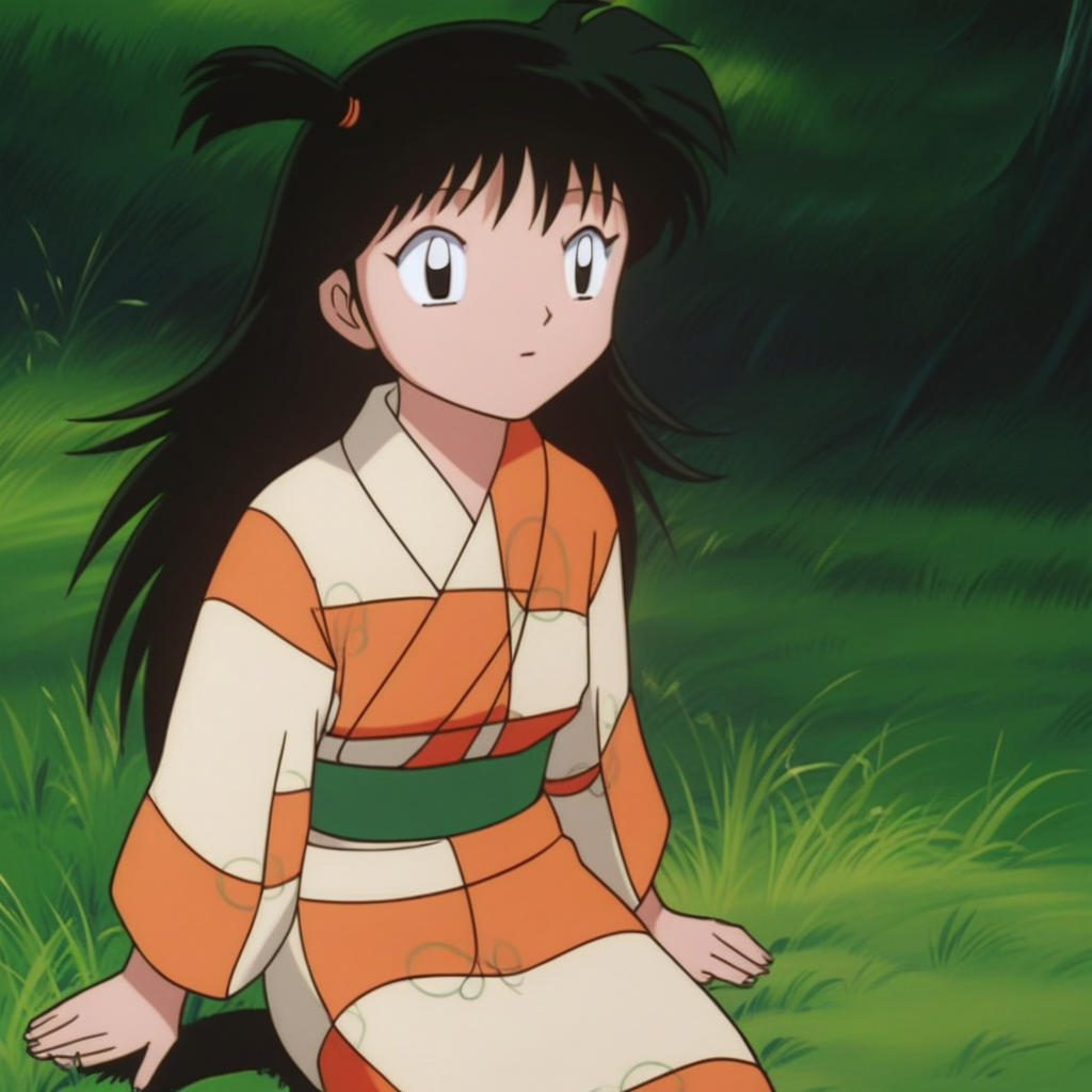 rin_inuyasha, black hair, long hair, side ponytail, kimono