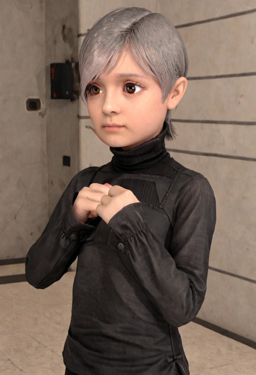 sunny-mgs4, 1girl, solo, short hair, grey hair, brown eyes, young
