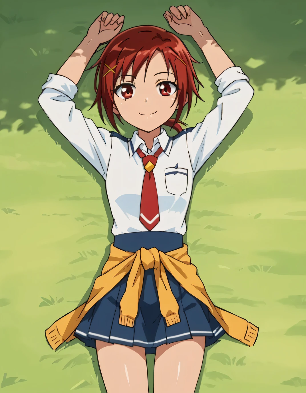 Hino Akane SM, red hair, red eyes, short hair, short ponytail