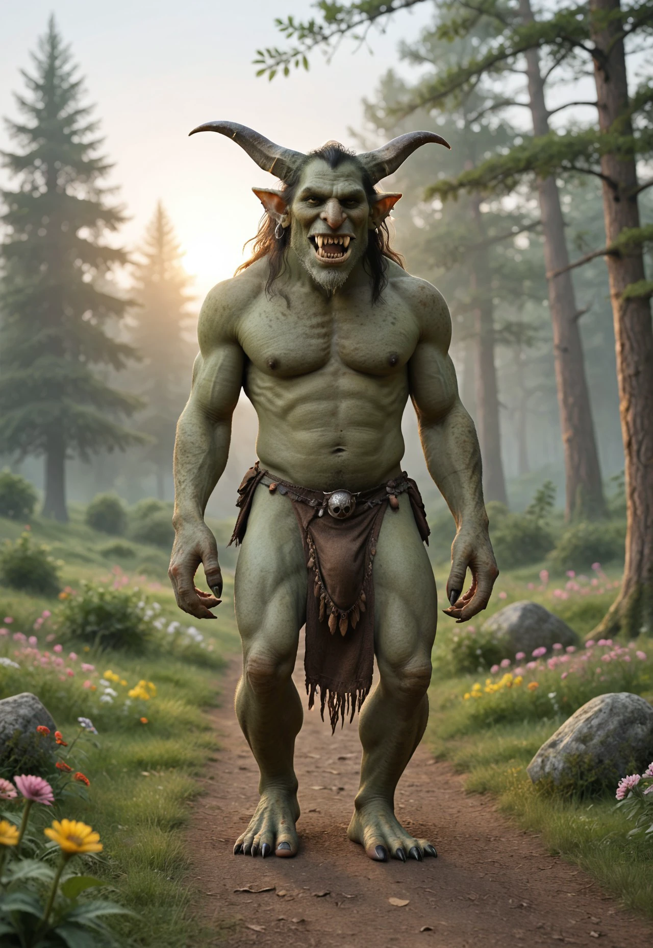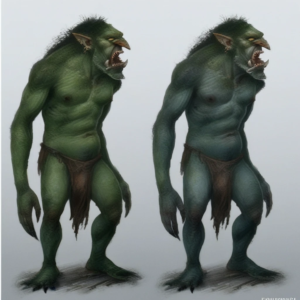 - Full Body, Realistic Detail: The ???????, muscular troll is depicted in full-body shots, often wearing a simple loincloth and holding a weapon.