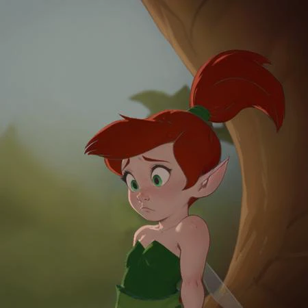 RedHairFairyGirl, 1girl, solo, red hair, ponytail, green eyes, red dress, fairy wings,