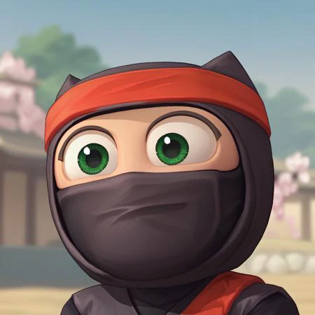 ClumsyNinja, 1boy, solo, green eyes, red headband, mouth mask, ninja gi
