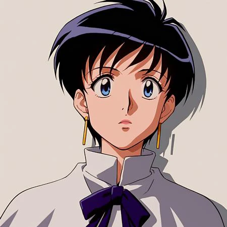 MerylStryfe, 1girl, solo, black hair, short hair, blue eyes, earrings, white capelet, ribbon, white dress pantyhose, white boots, long sleeves