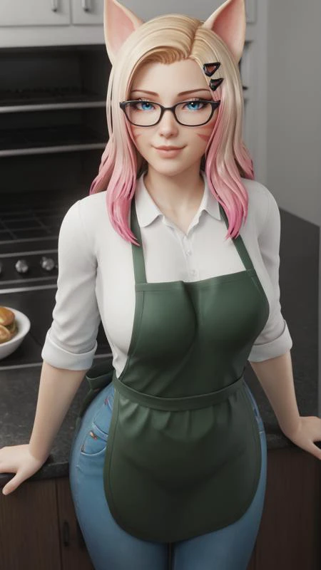 Tags for look : makeup, whisker markings, fox ears, animal ears, blue eyes , long hair, multicoloured hair, two-tone hair, pink and blonde hair, gradient hair,
