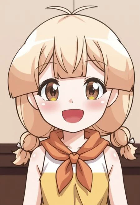 hawa, brown eyes, blonde hair, twin braids, antenna hair,