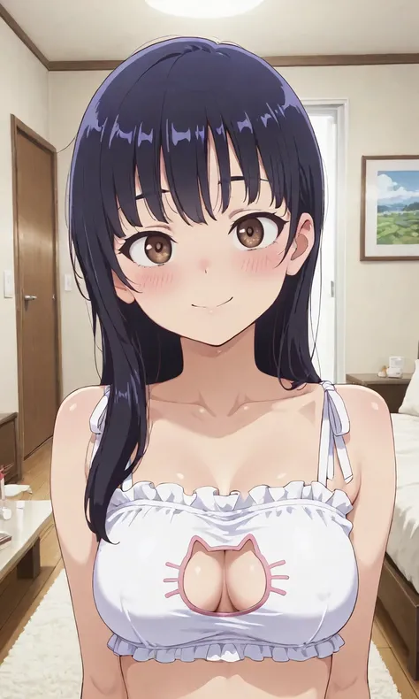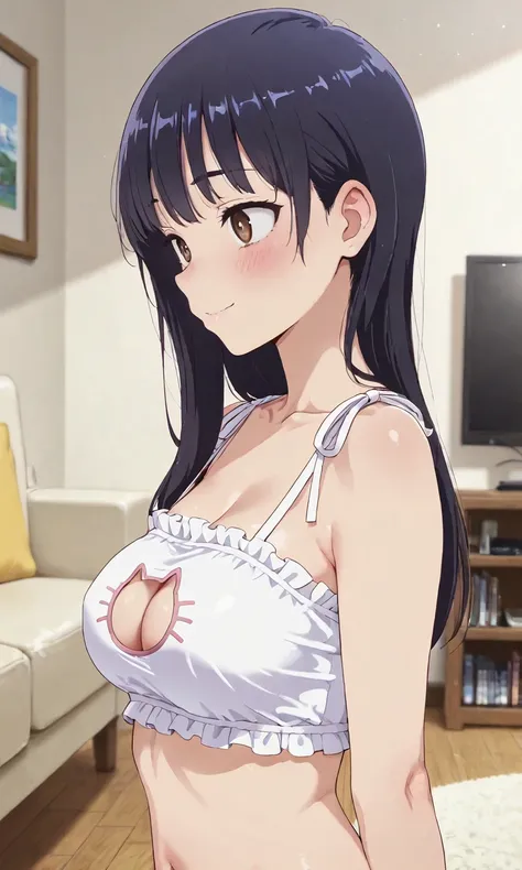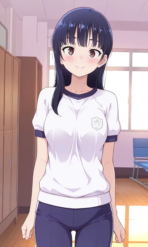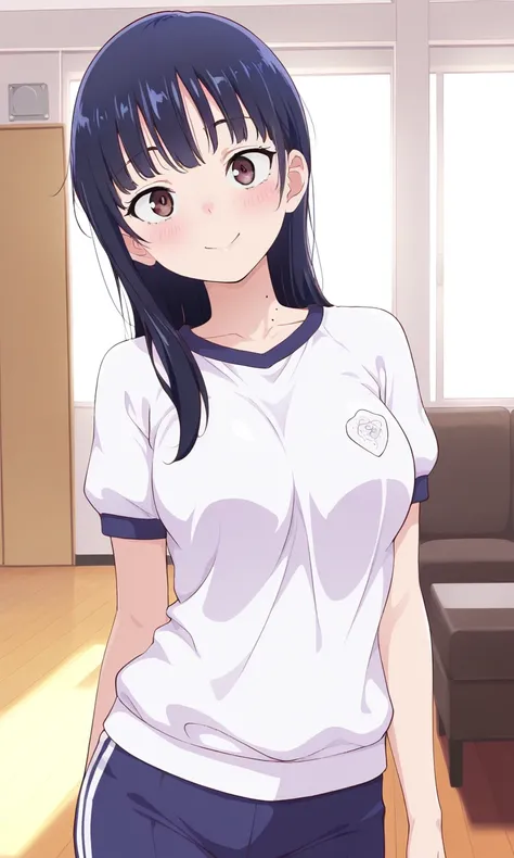 Yamada_Anna, black hair, brown eyes, long hair, sidelocks,