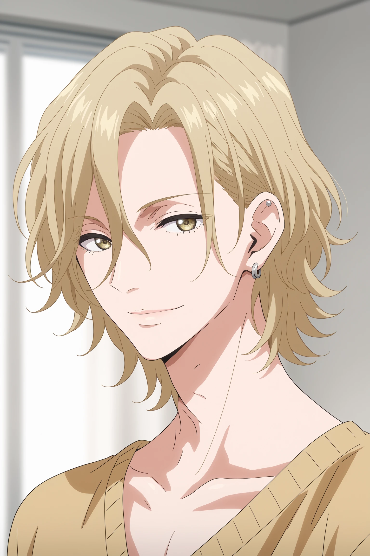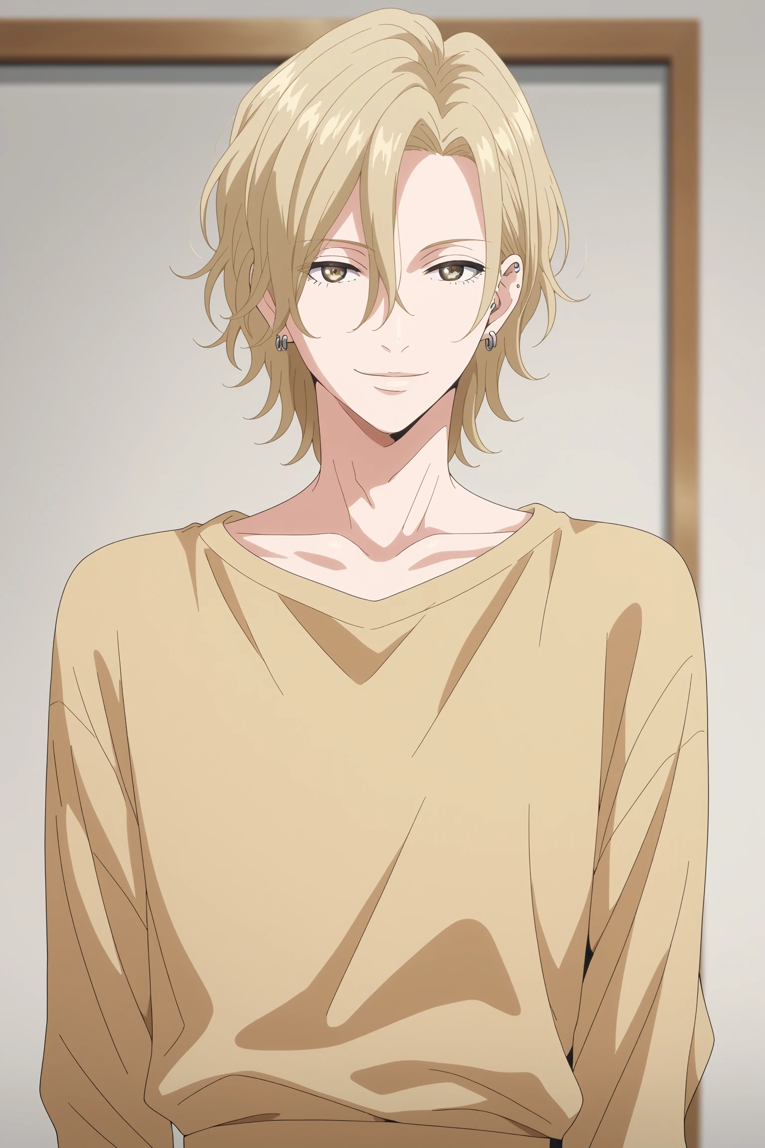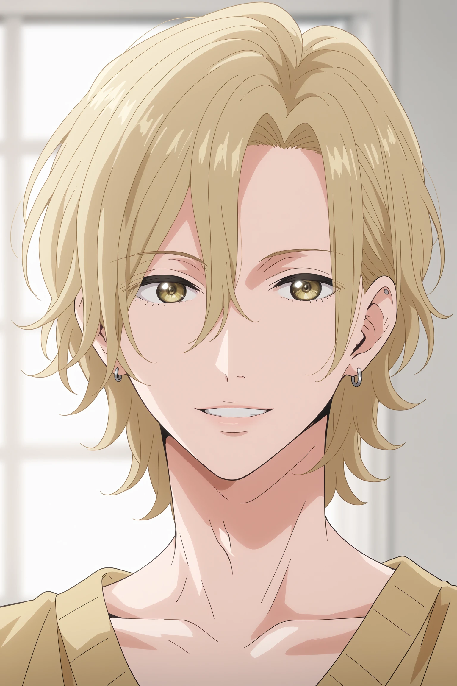 otomo_hisashi, blonde hair, yellow eyes, earrings