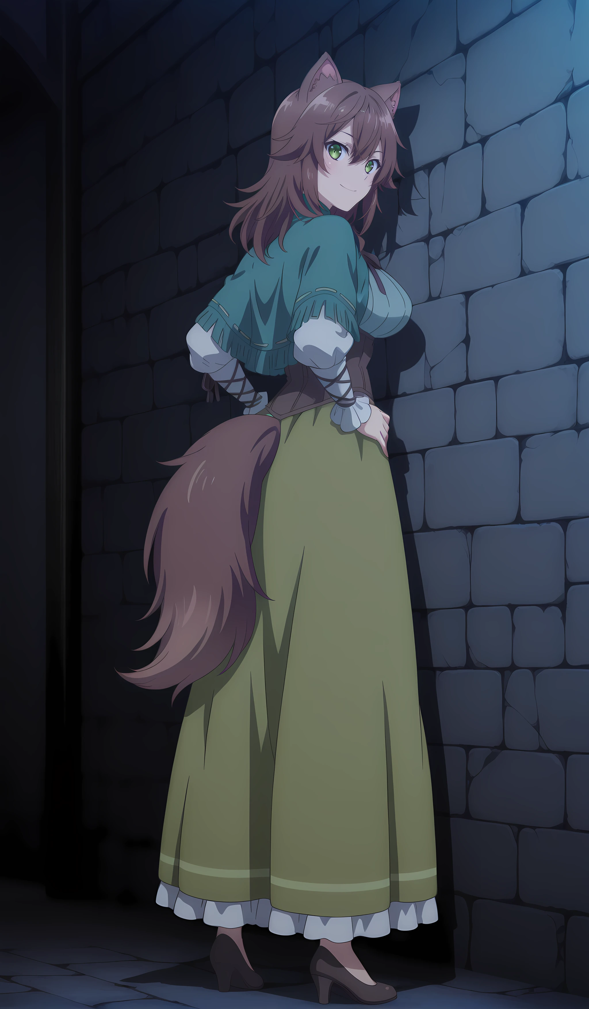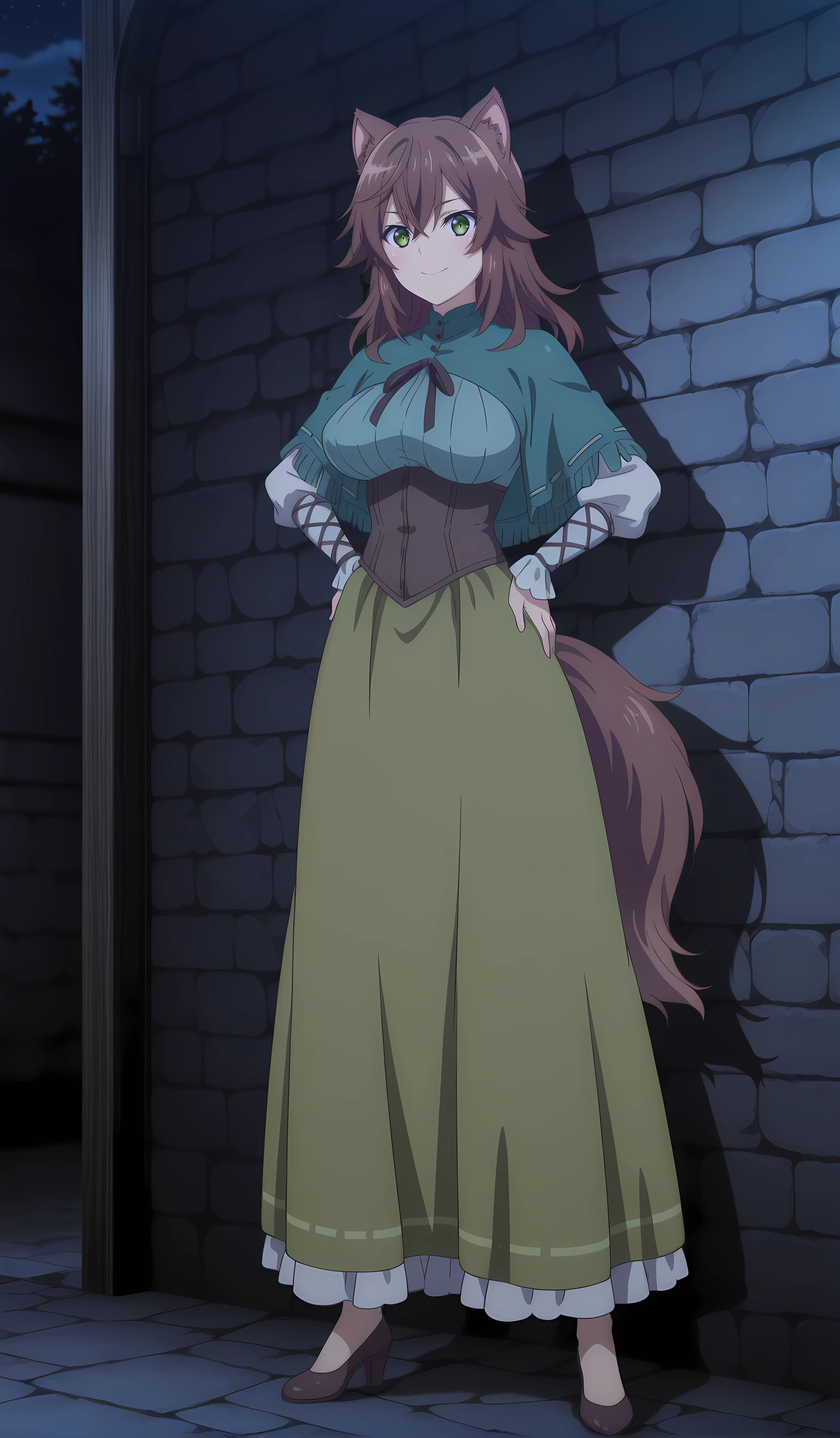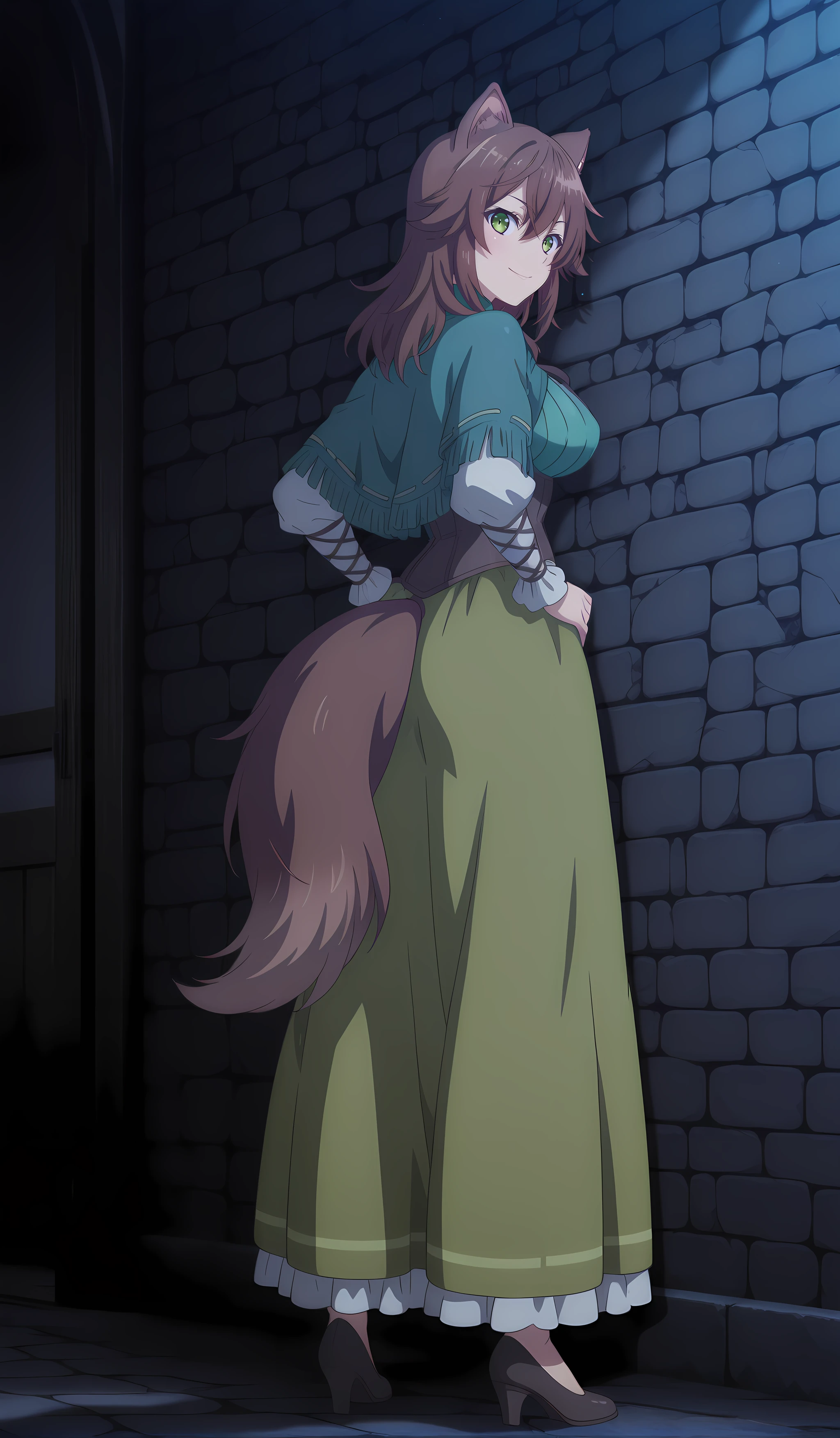 winona_choyoyu_ilxl, 1girl, green eyes, animal ears, brown hair, tail, long hair, , hair between eyes, anime coloring
