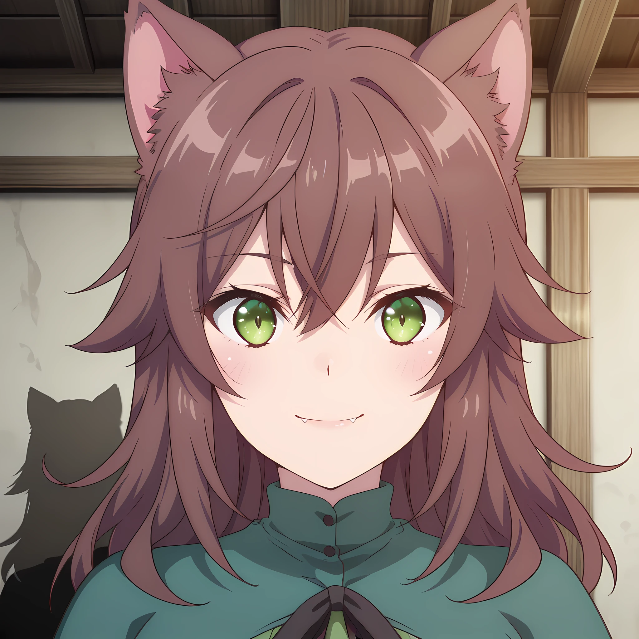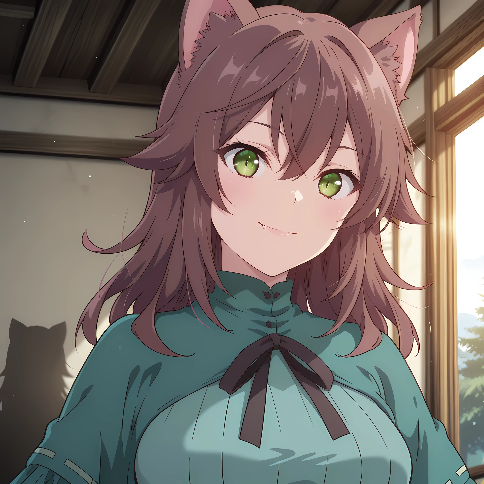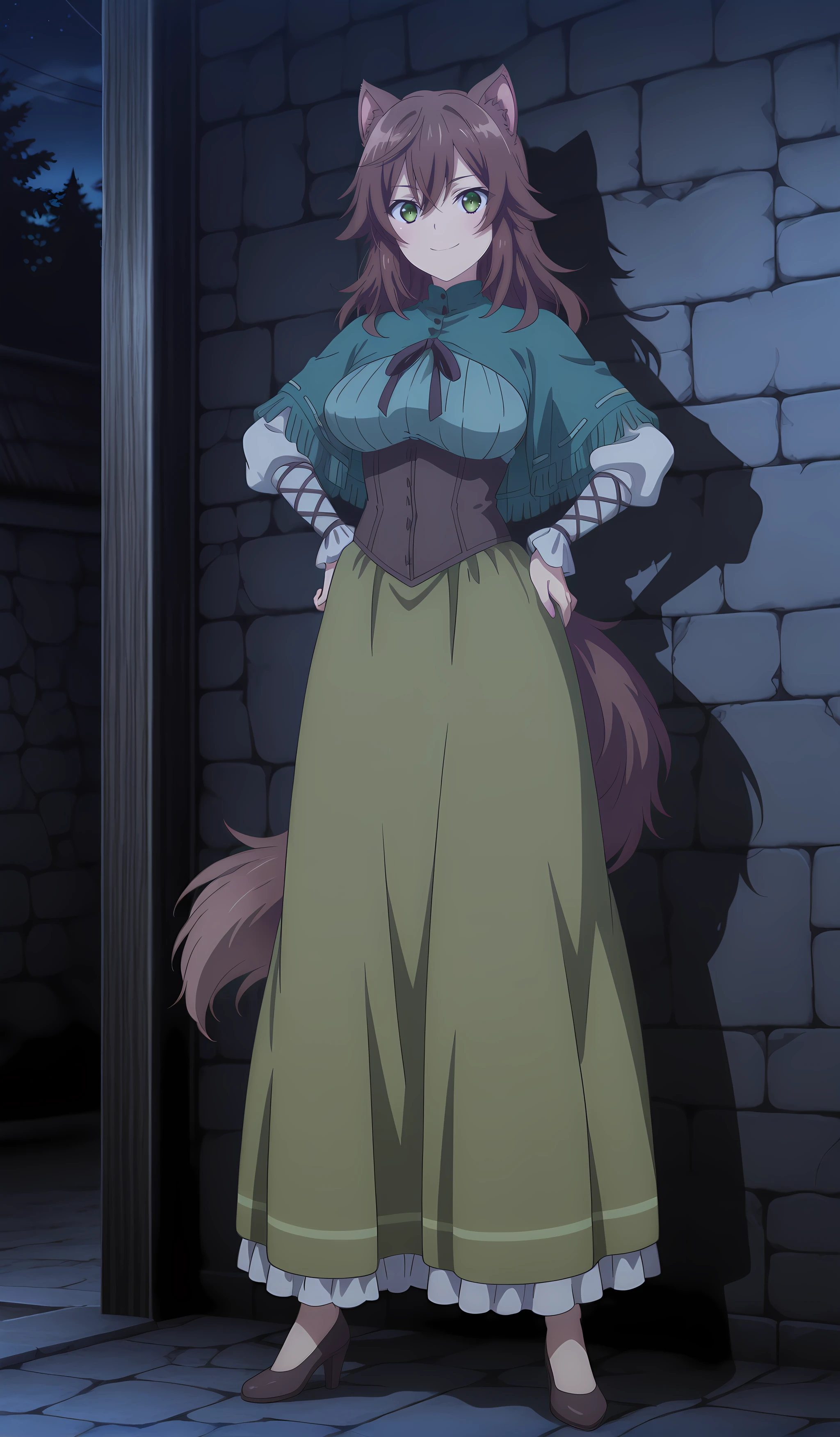 winona_choyoyu_ilxl, 1girl, green eyes, animal ears, brown hair, tail, long hair, , hair between eyes, anime coloring