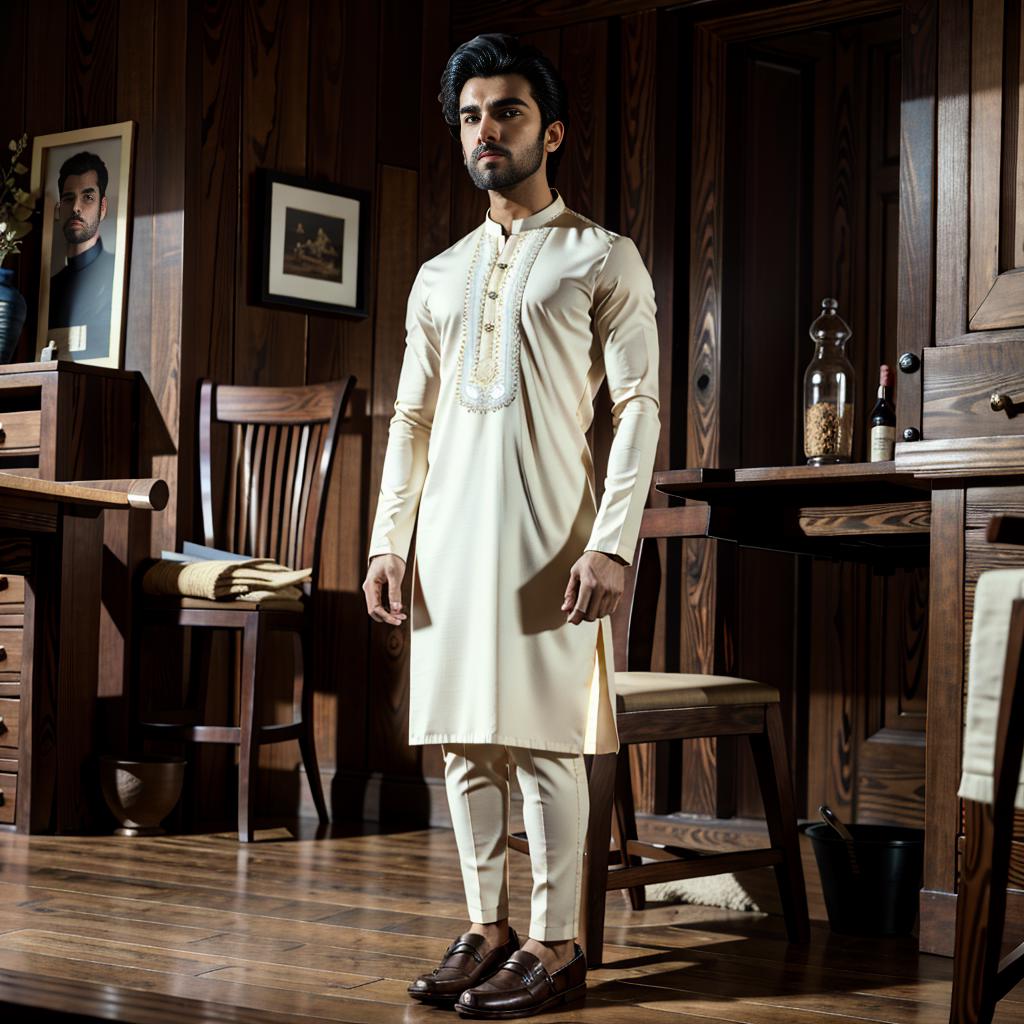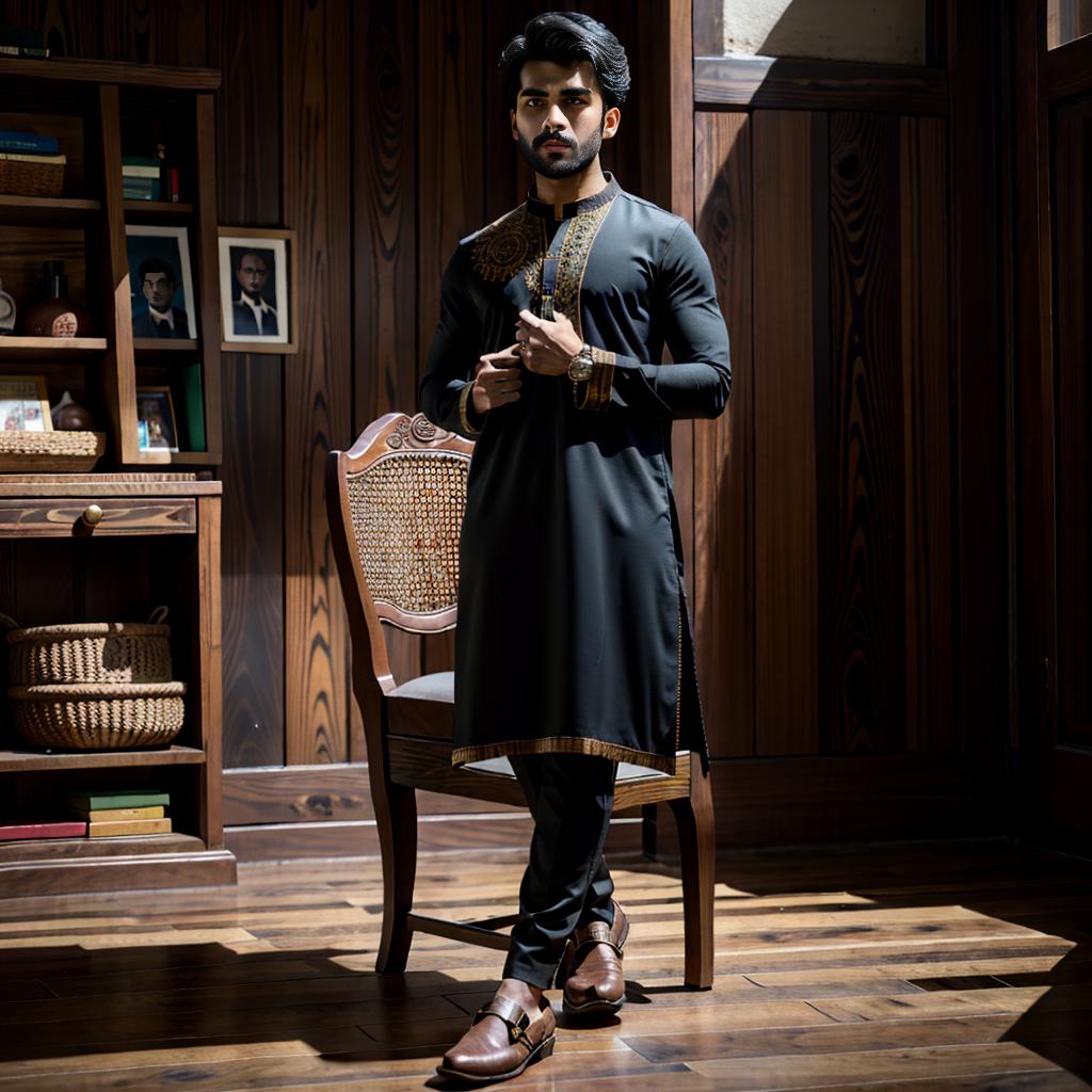 Positive prompt: xyzsankurta, (highly detailed:1.3), 1boy, solo,(full body:1.3), Ultra-detail, (highres:1.1), best quality,(masterpiece:1.3),chair, cinematic lighting, (highly detailed face and eyes:1.3), kurta, shoe, <lora:xyzsankurta:.8>