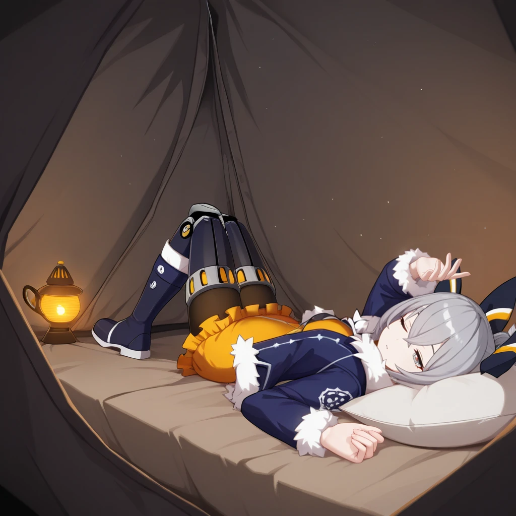 Bron, Fol001, Br_Sns, bronya zaychik, grey hair, grey eyes, short dress, orange dress, fur-trimmed jacket, winter clothes, blue jacket, fur scarf, alt striped bow, black bow, alt hair bow, fur-trimmed sleeves, long sleeves, blue sleeves, black pantyhose, pantyhose, alt mechanical legwear, winter bootsNightfall Witch: