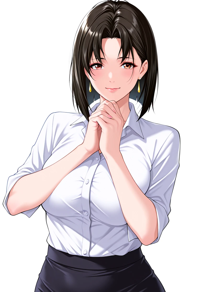 ??化 : (mature woman), (black hair), short hair, dark brown eyes,