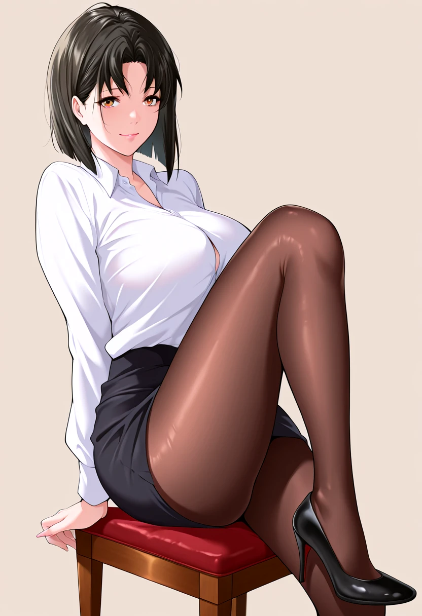教師時代(及びソープランドオプション料金コスチューム) : white shirt, black Pencil skirt, Pantyhose, black high heels