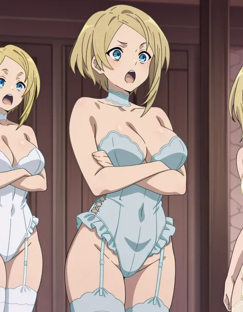 <lora:teddy-lingerie-illustriousxl-lora-nochekaiser:1>, teddy lingerie, teddy (lingerie), lace-trimmed leotard, lingerie, underwear, lace, leotard, lace-trimmed choker, lace trim, frilled leotard, underwear only. highleg leotard, highleg, garter belt, thighhighs, see-through leotard, bustier,