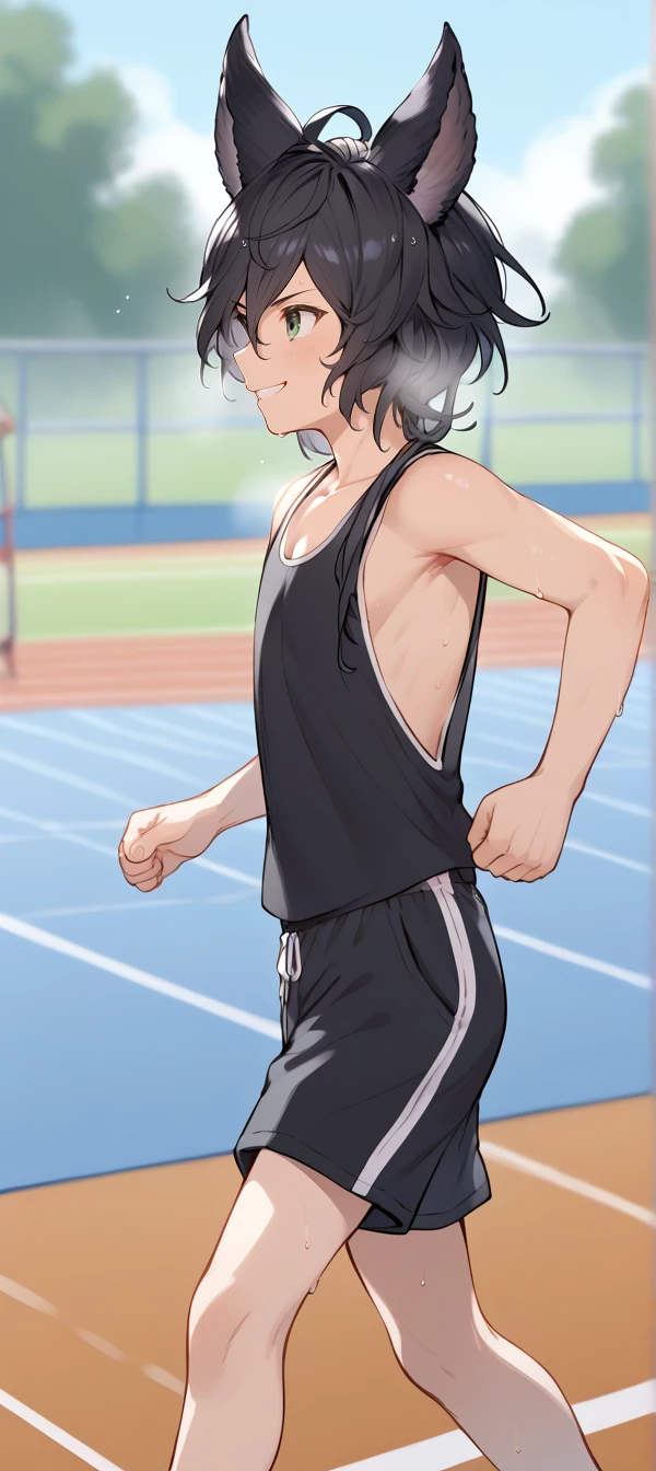 mordred(granblue),animal ears,black hair,green eyes,erune