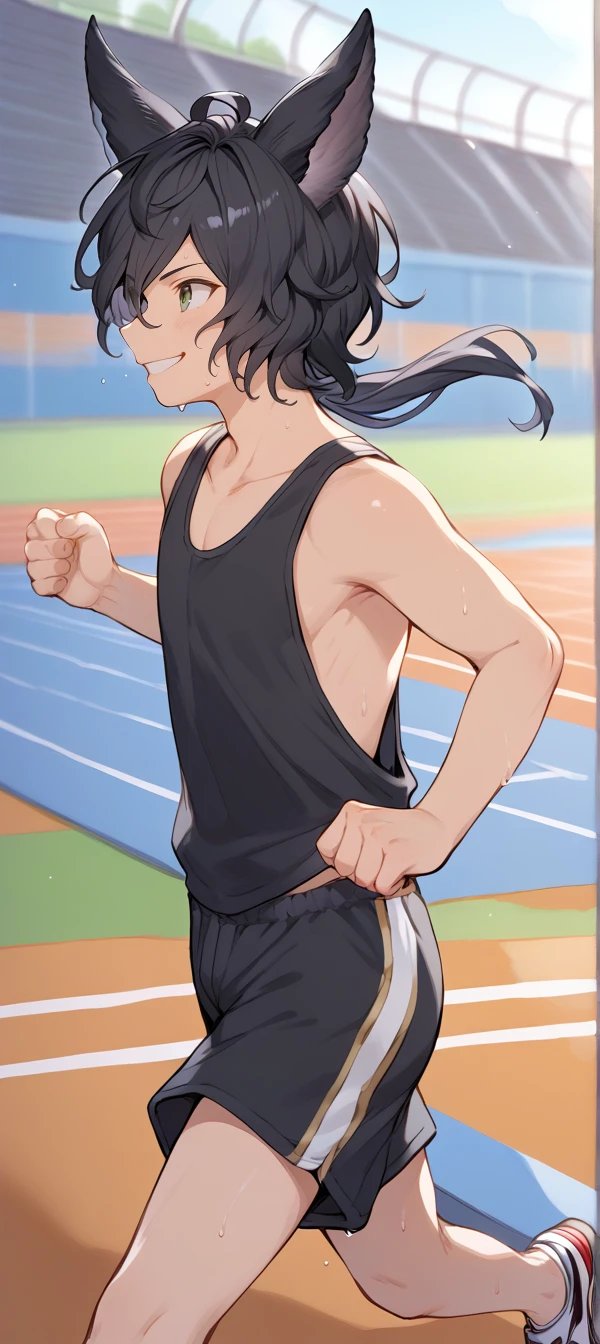 Trigger words: mordred(granblue),animal ears,black hair,green eyes,erune