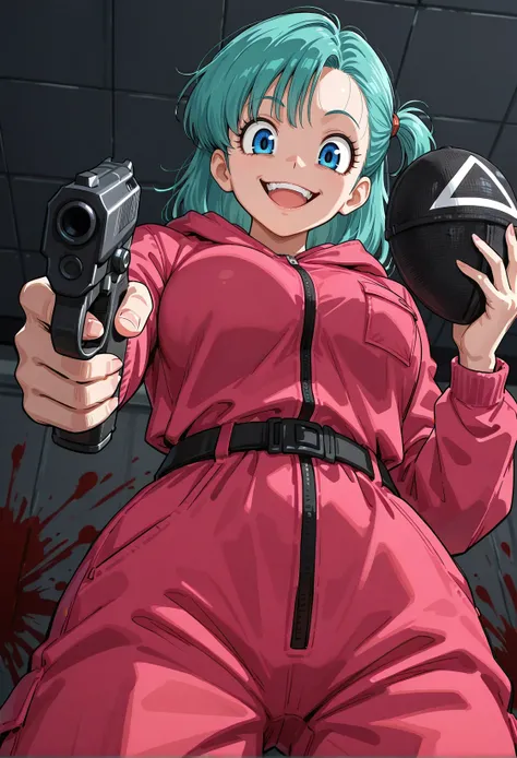 worker \(squid game\), hooded pink jumpsuit, belt, black gloves