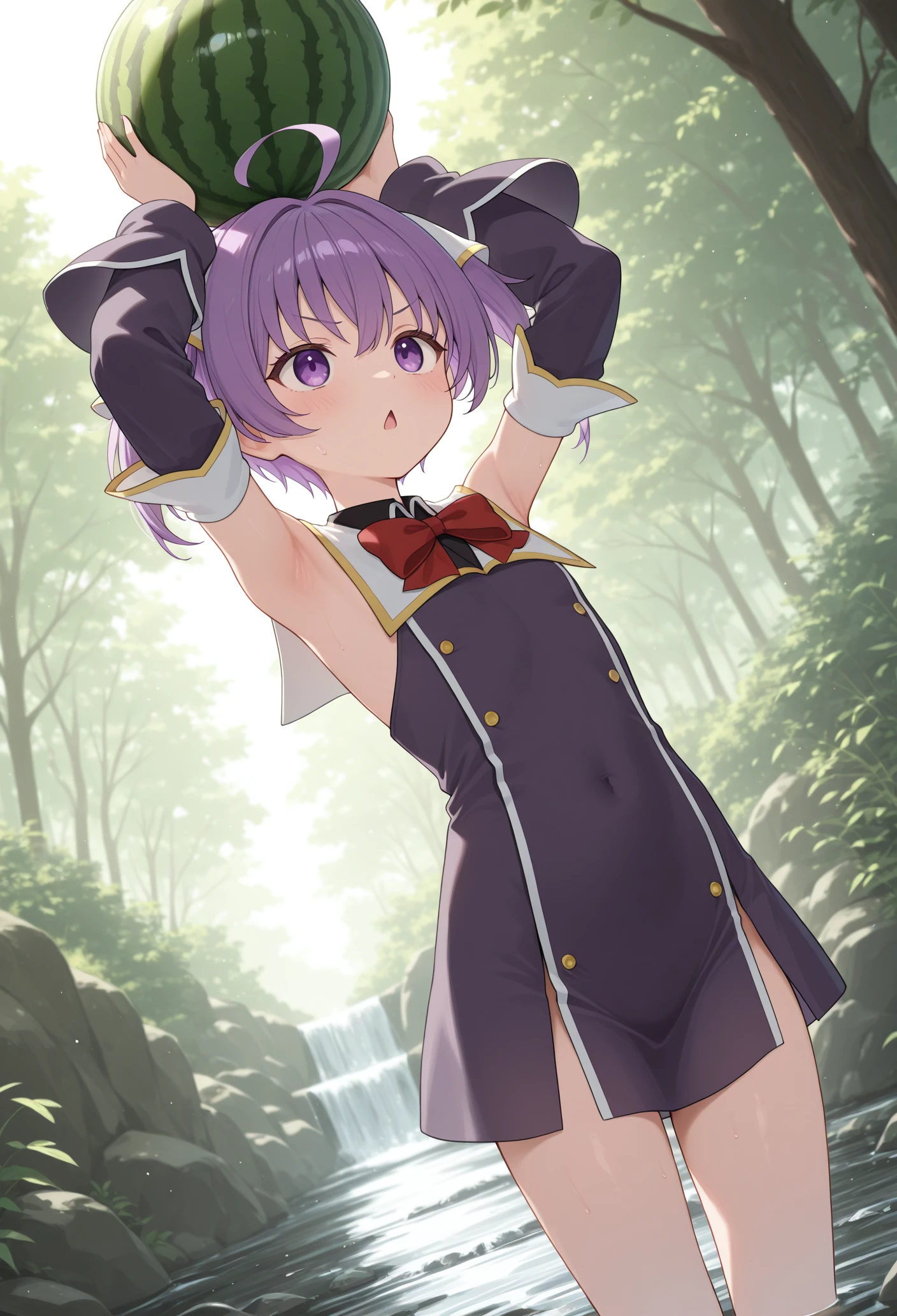 purple eyes,purple hair,short hair,ahoge,twintails,