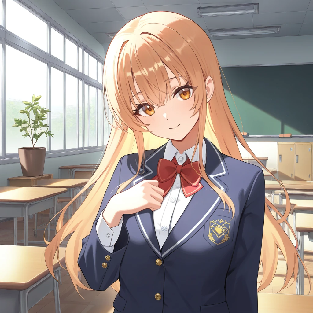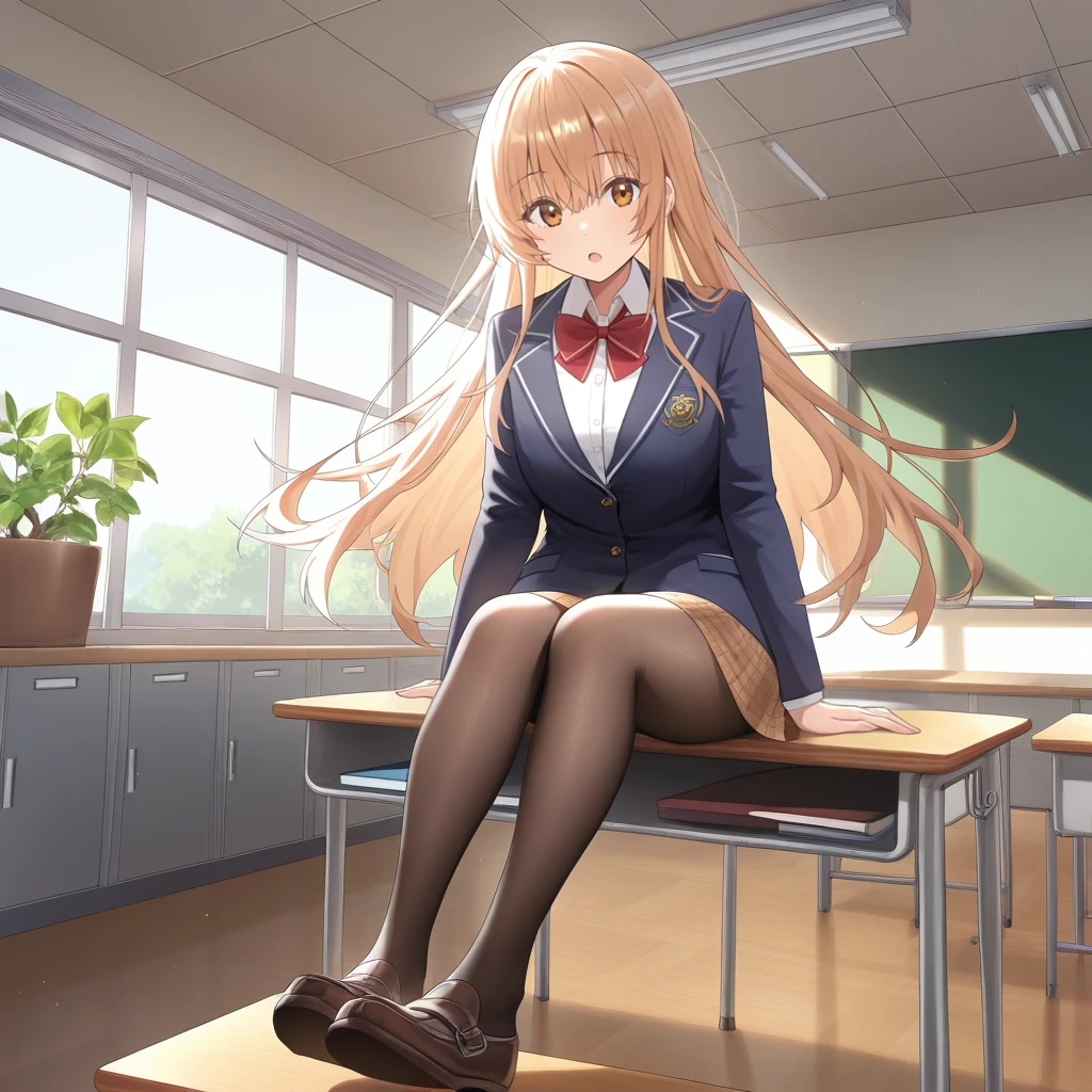 ShiinaMahiru, Mhr_Def, light brown hair, brown eyes, long hair, dress shirt, school uniform, white shirt, red bowtie, buttons, dark blue blazer, blazer, plaid skirt, brown skirt, brown pantyhose, dark brown footwear, loafers,Magician with Cat Ears Outfit: