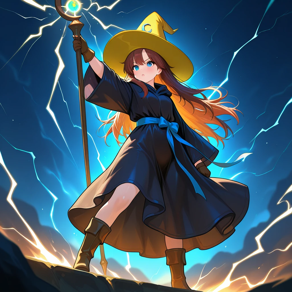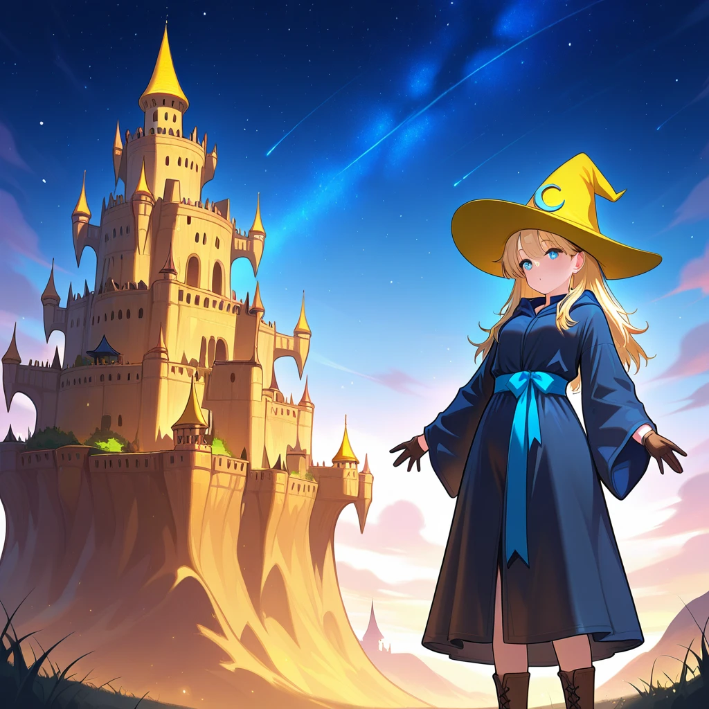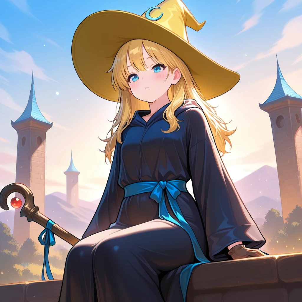 witch hat,yellow_headwear,wide ,sleeves,glovesOther Prompts: