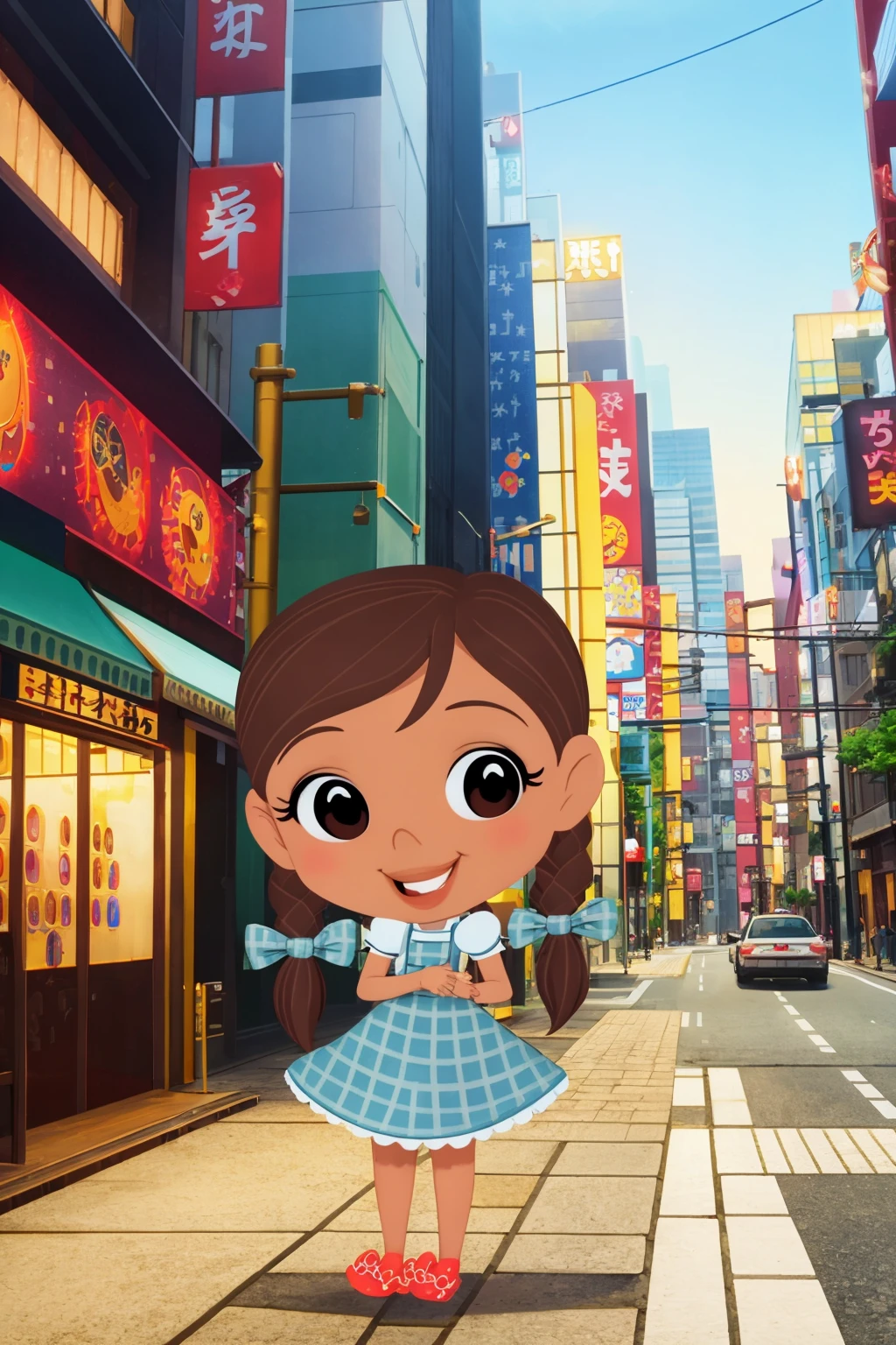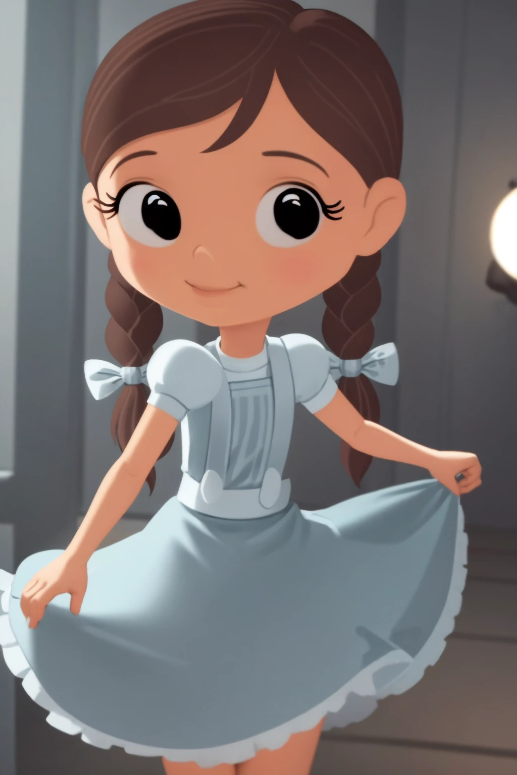 Basic prompts : 1girl, brown hair, twin braids, black eyes, dark skin