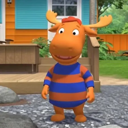 Tyronemoosebyil, anthro, male, moose, orange fur, black eyes, antlers, red hair,