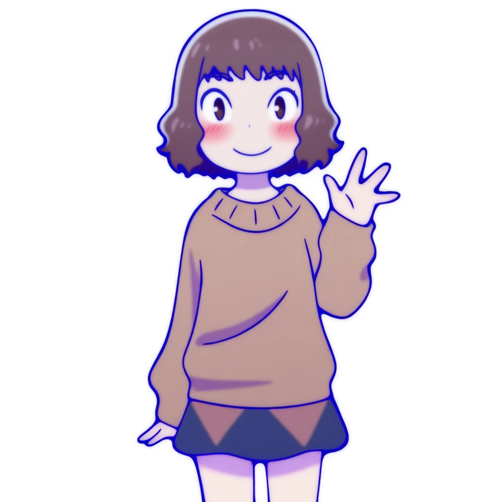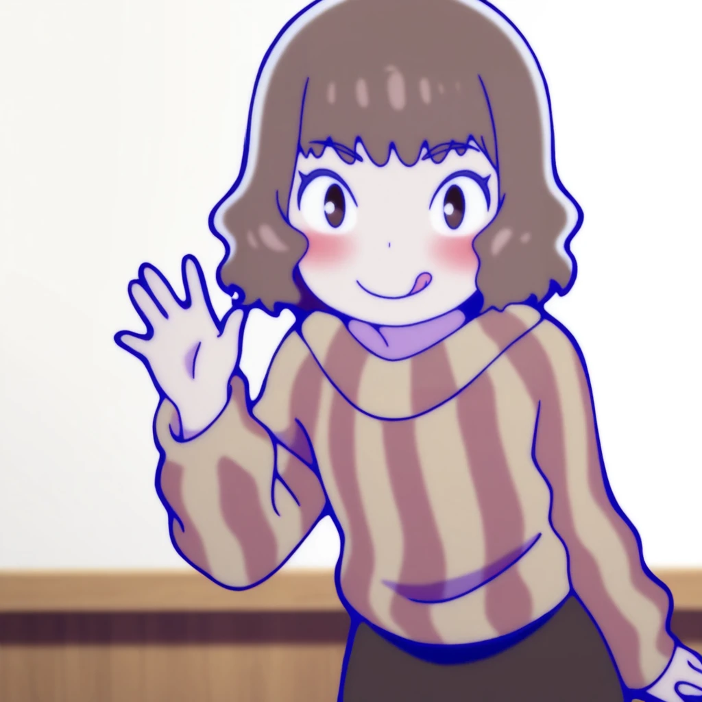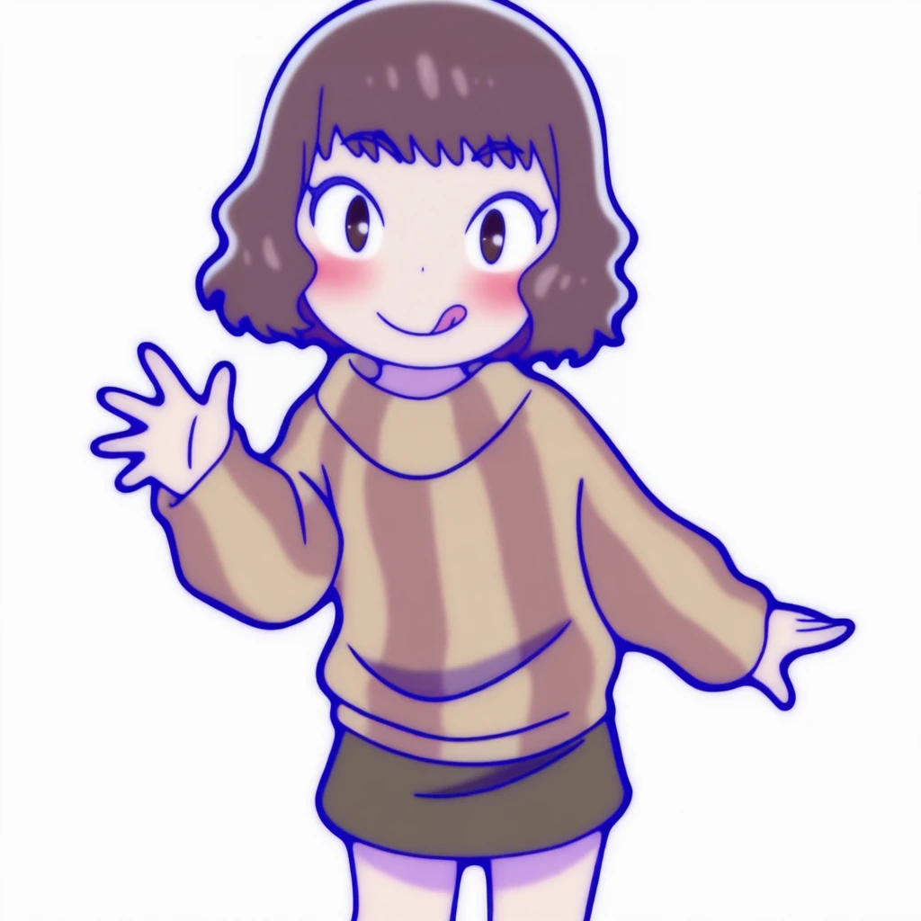 iwase, 1girl, solo, skirt, red vertical-striped sweater, short hair, brown hair,brown eyes,