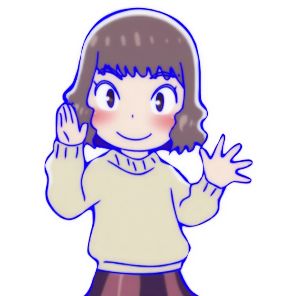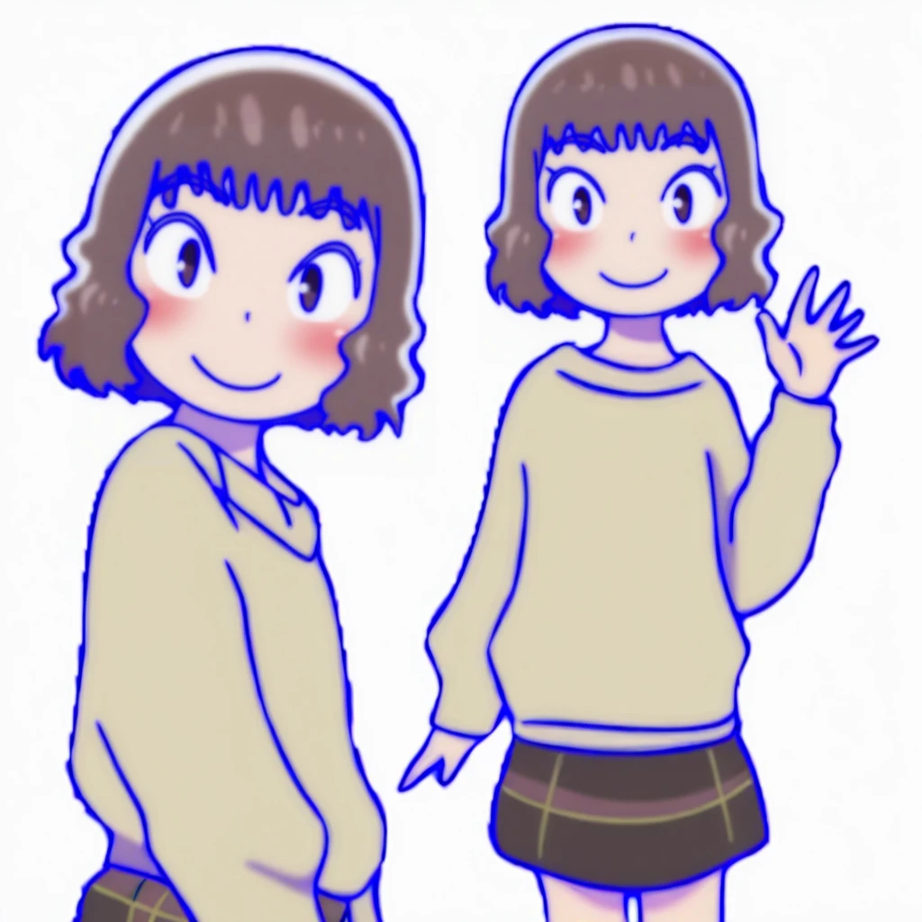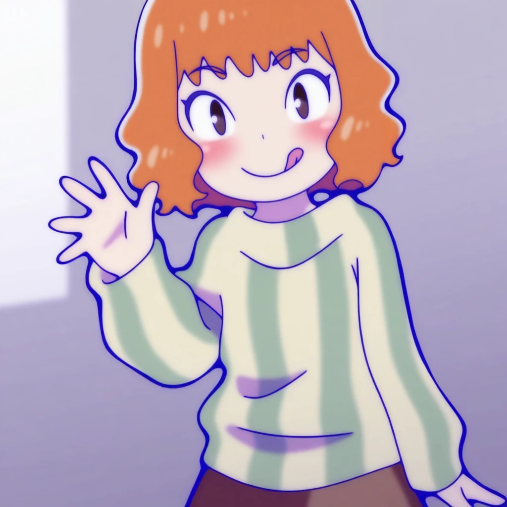 iwase, 1girl, solo, skirt, red vertical-striped sweater, short hair, brown hair,brown eyes,