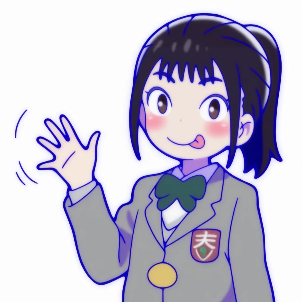 18iwase 1girl, solo, black hair, ponytail, school uniform, brown eyes,