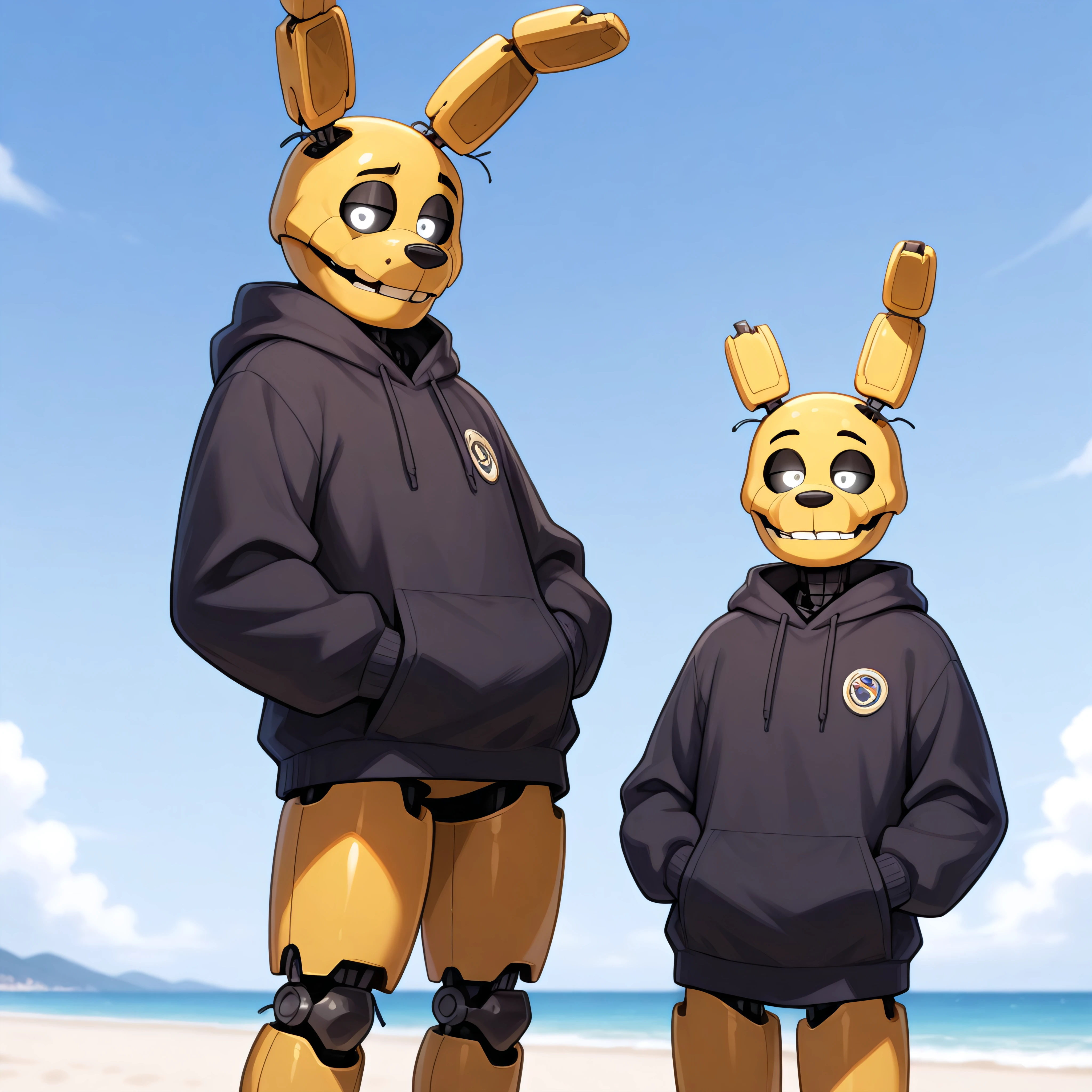 He can be a furry and a robot, or yellow and dark green (spr1ngtrap, white eyes, {yellow body|dark green body}, )
