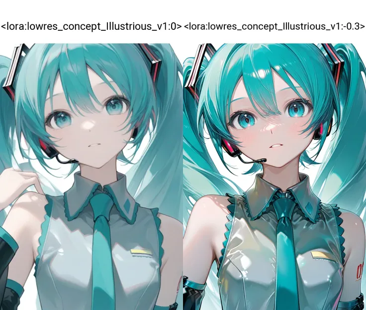 This lora makes the image low resolution with positive strength, and makes the image high resolution with negative strength.