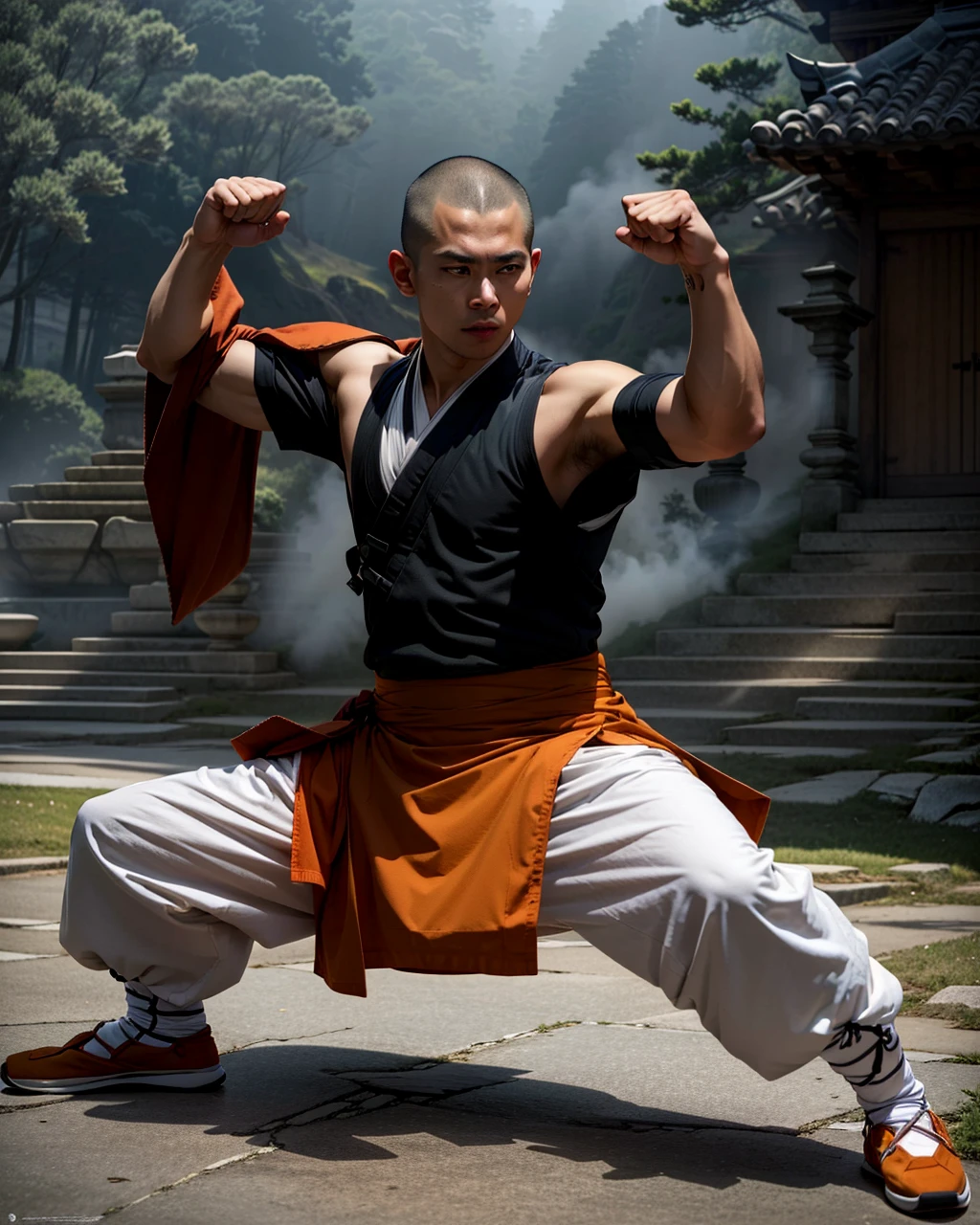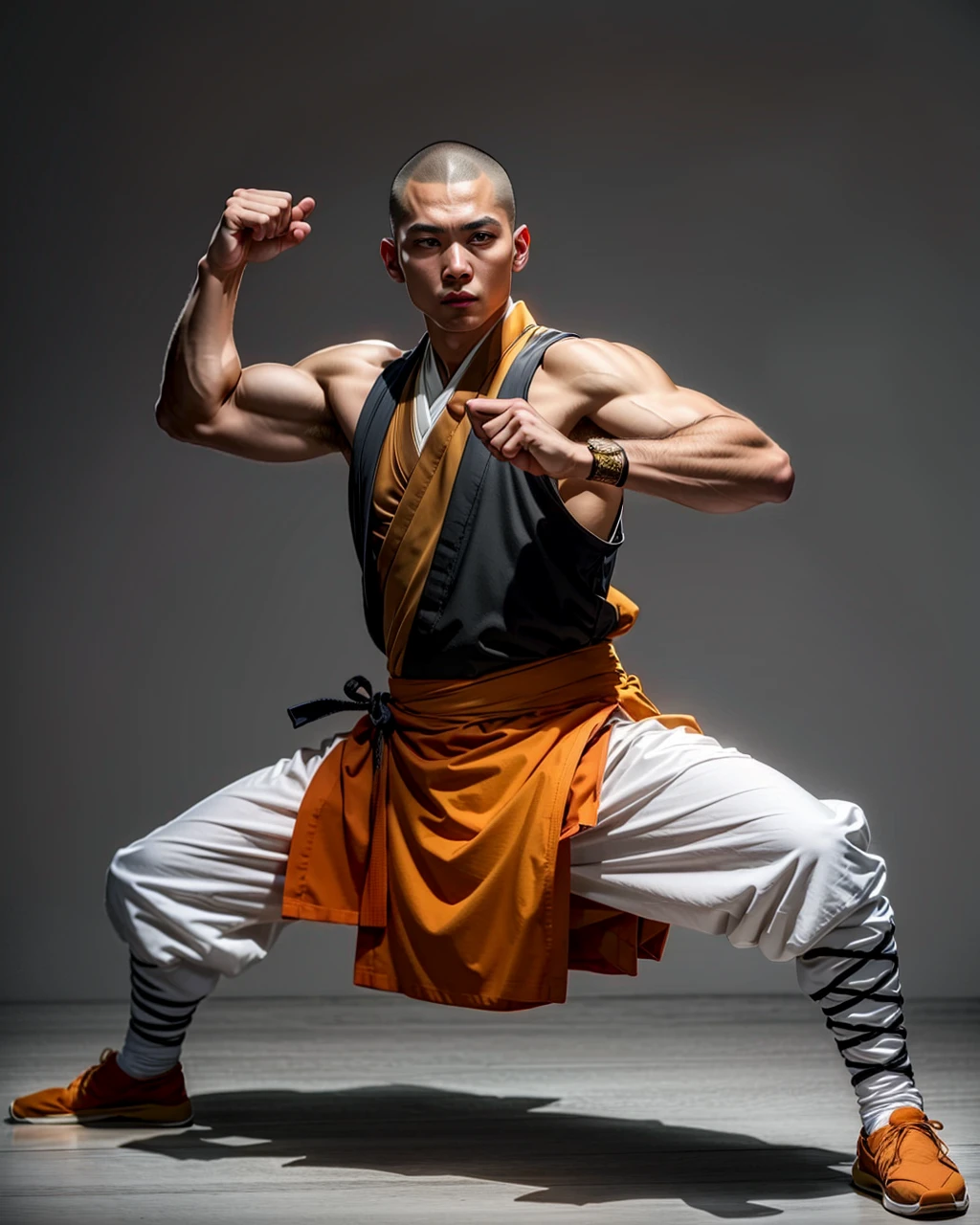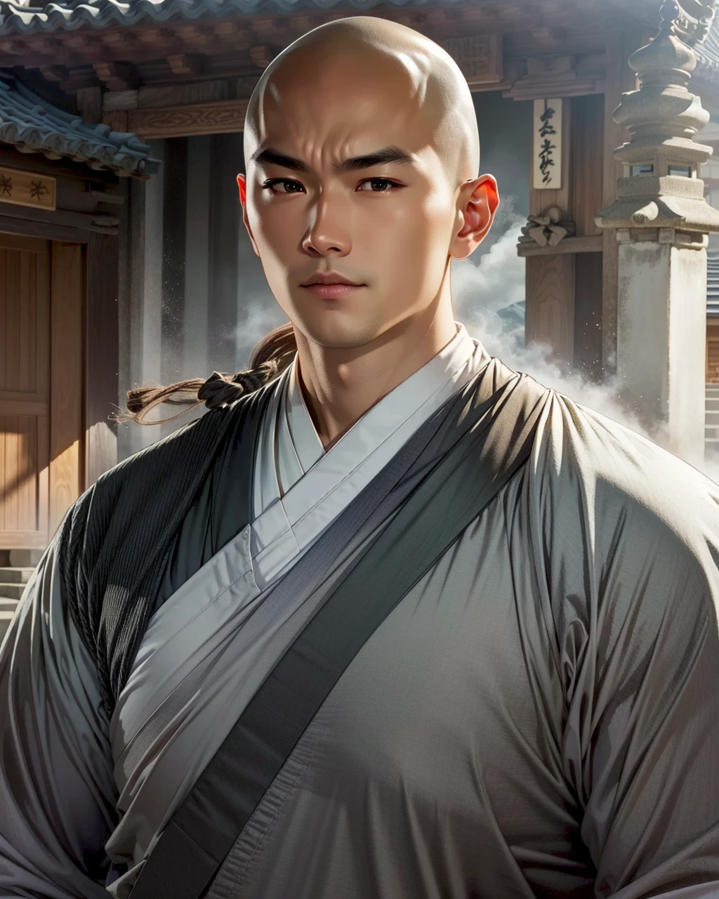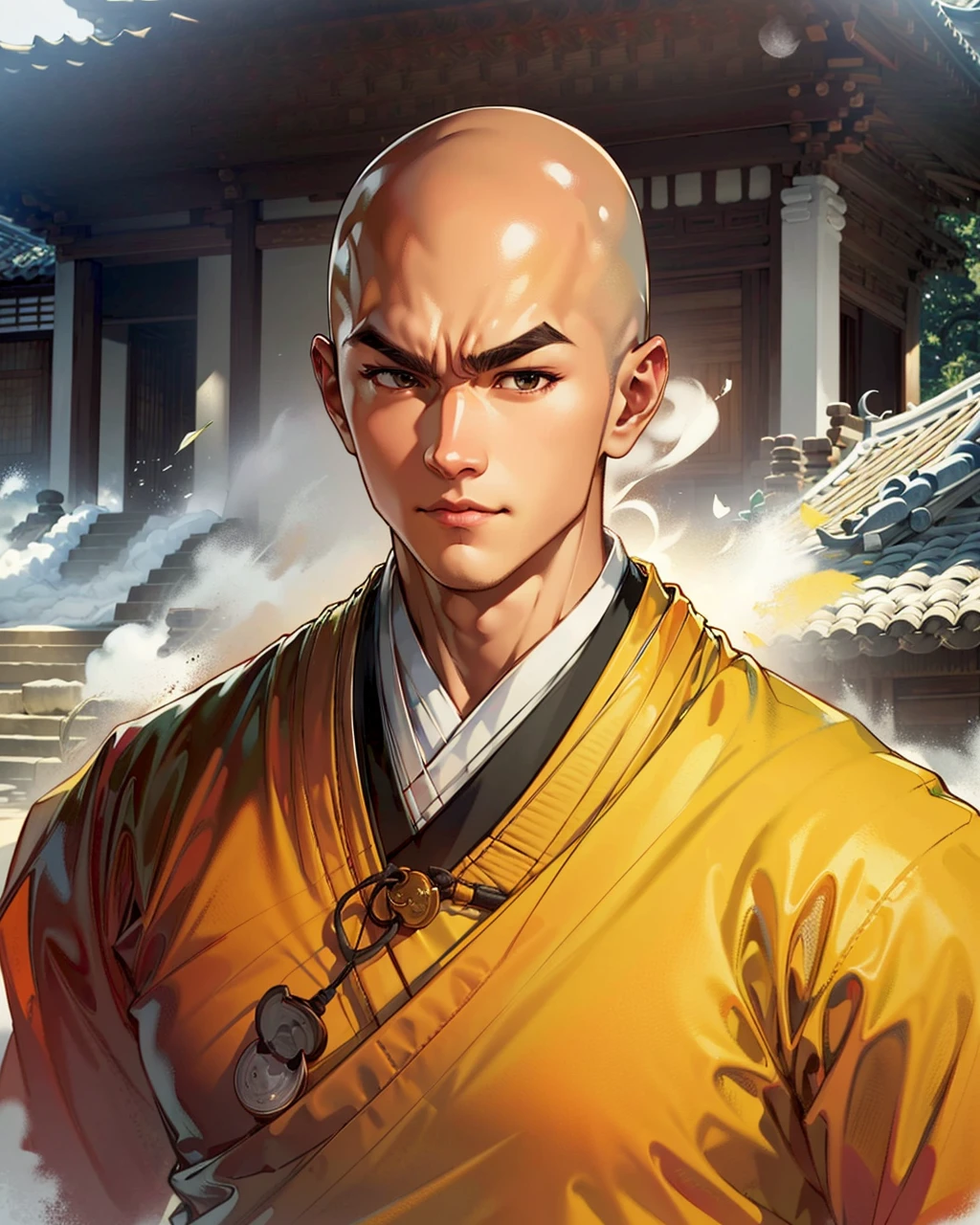 Mainly male and bald, and it's fun to include some pictures of martial arts monks in fighting positions.