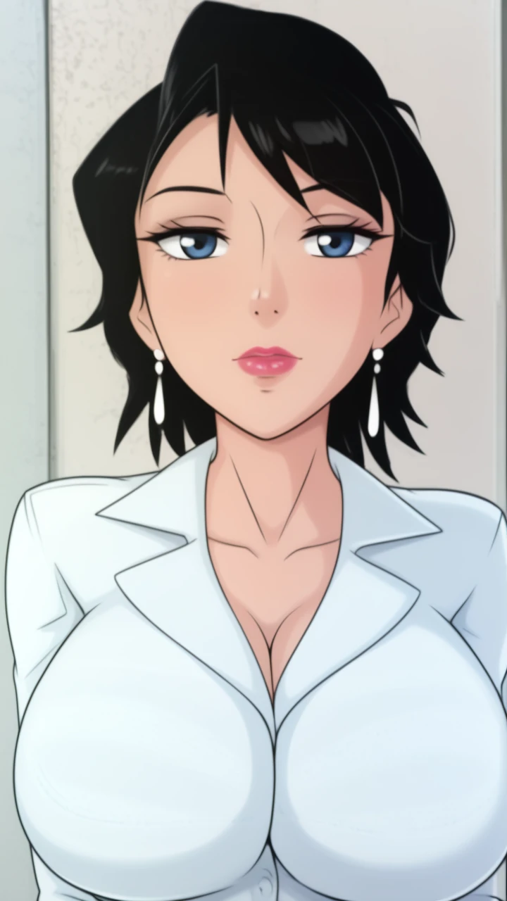 For look - v1ct0r14, short hair, lipstick, black hair, blue eyes, jewelry, earrings