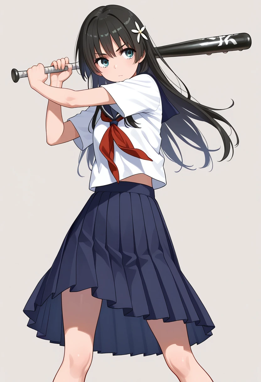 ・sailor collar, neckerchief, short sleeves, pleated skirt, loose socks, black loafers