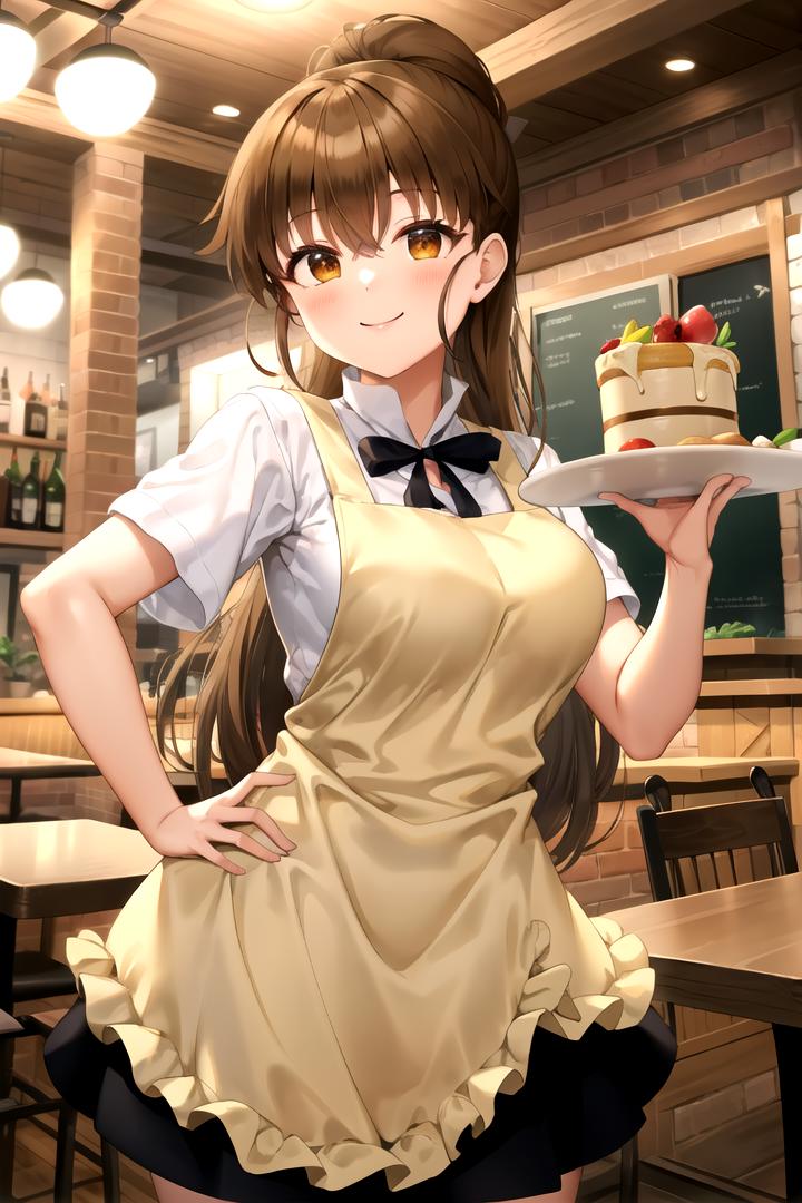 Use white shirt, ribbon, apron, skirt for her standart outfit.