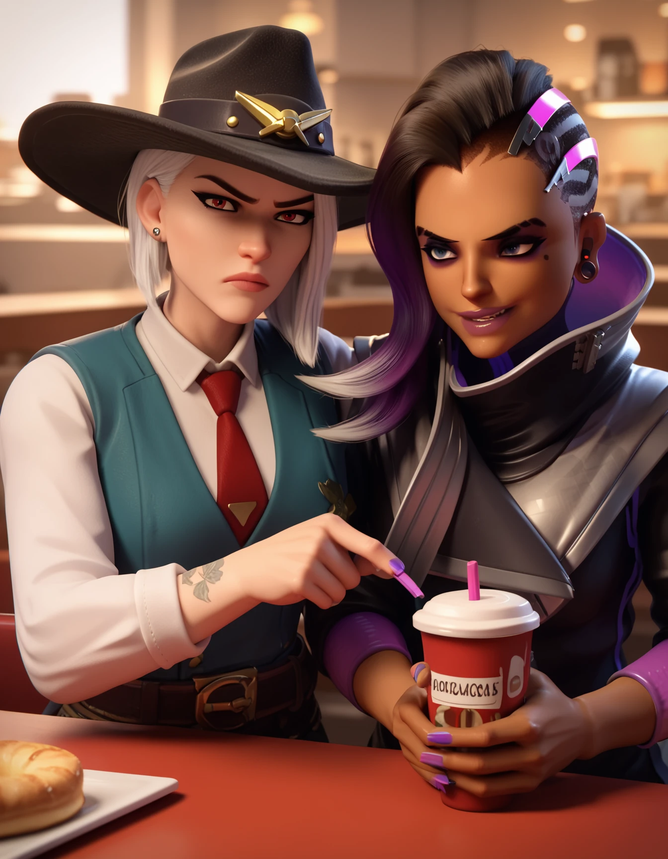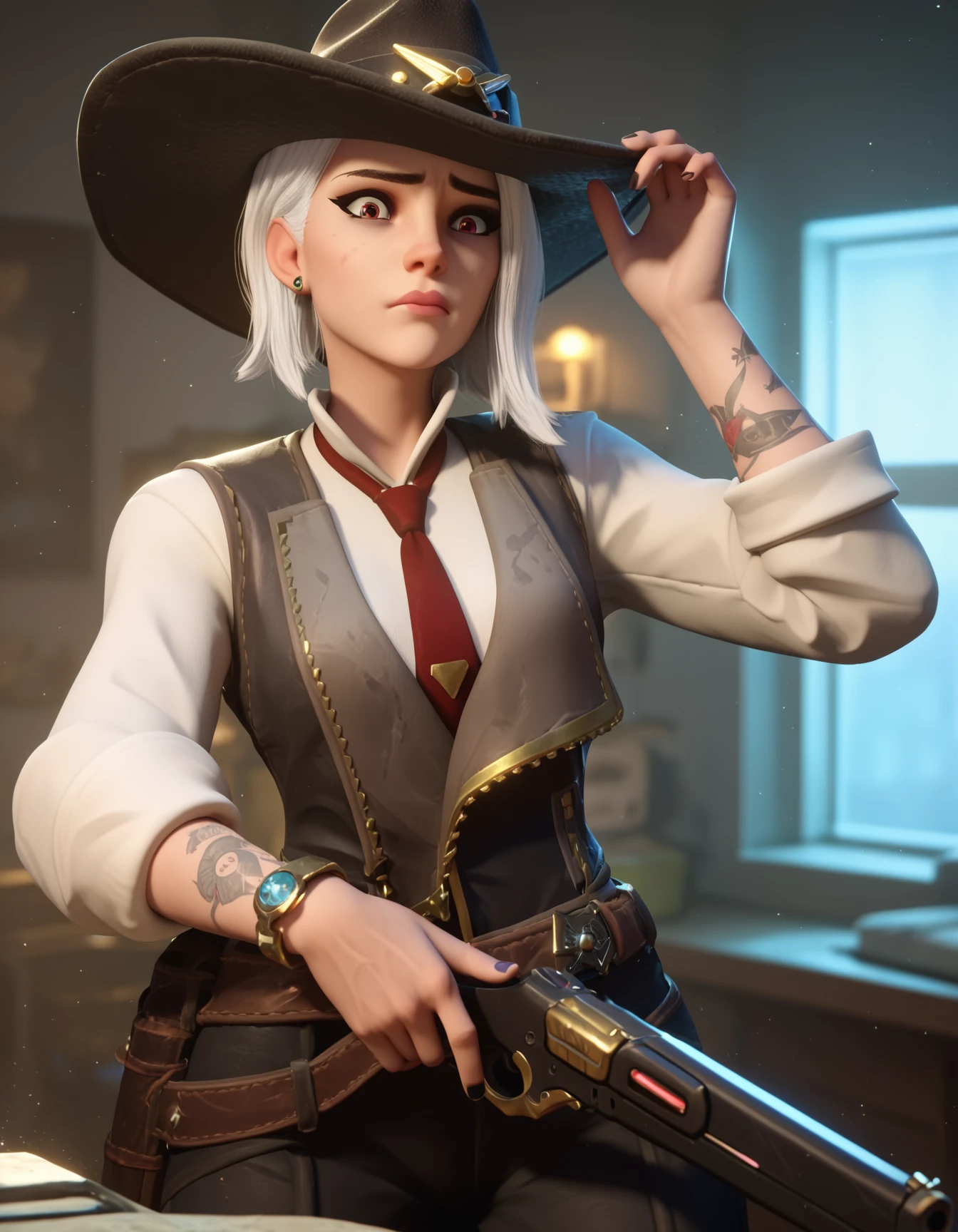 ashe: owashe, white hair, cowboy hat