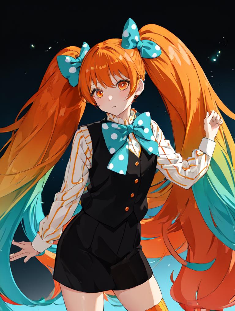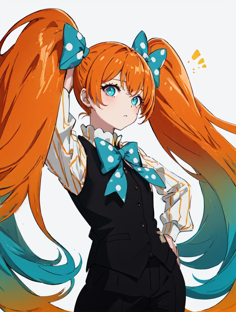 Trigger words: 1girl, titan, orange gradient hair, polka dot bow, very long hair, shirt, vest
